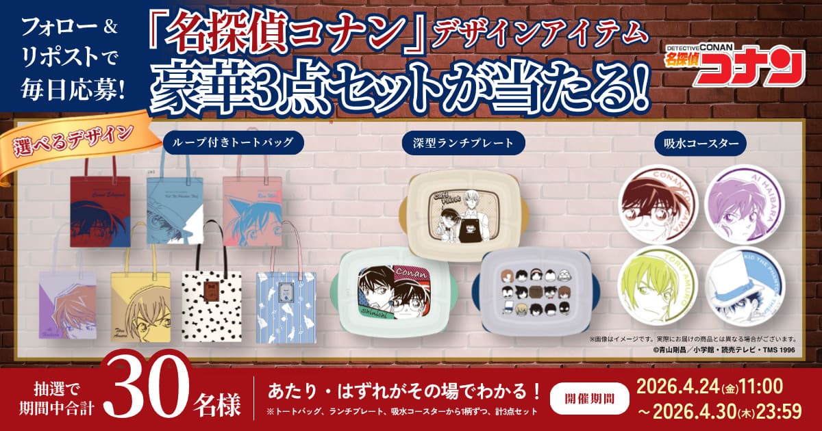 対象の『名探偵コナン』商品を1回のご注文で4,900円(税込)以上ご購入で、オリジナルステッカー4枚セットをプレゼント!お一人様何度でもご注文いただけます。
