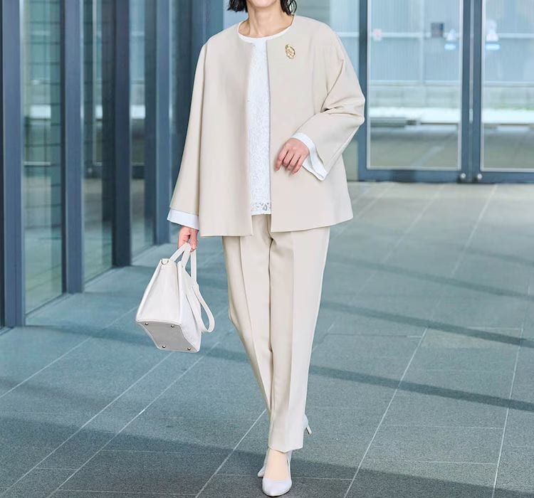 また、テーパードパンツやレーススカートとセットになったスーツは、合わせるトップス次第で日常のコーデにも使いまわせます。