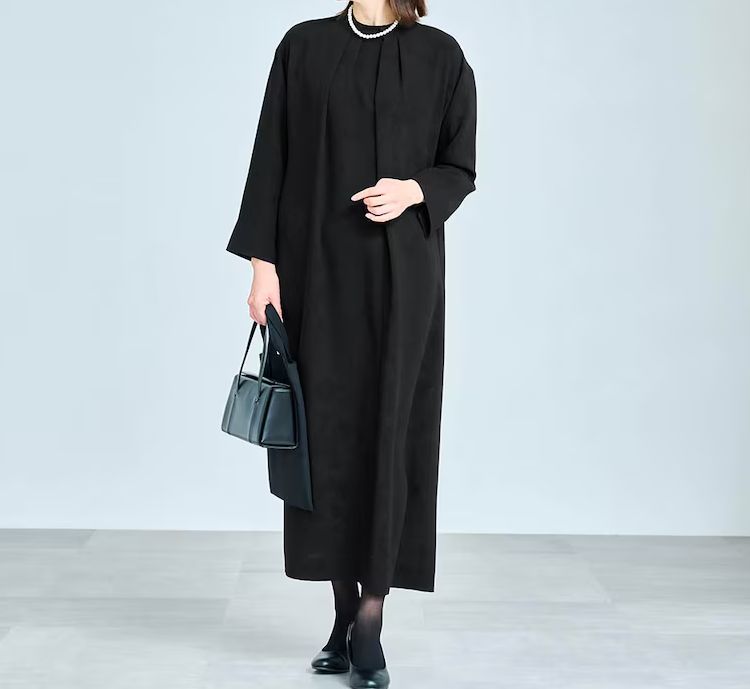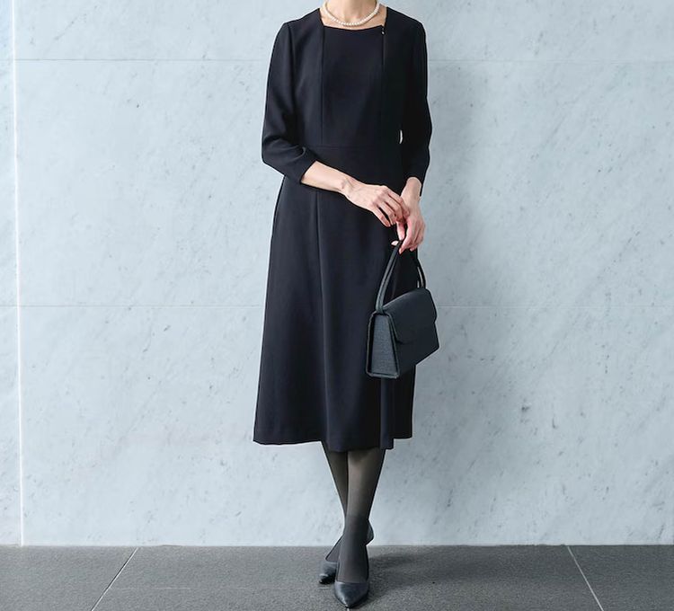お通夜やお葬式に参列する機会が増えていく世代ですから、きちんとしたブラックフォーマルを1着は持っておきたいですね。体型が気になる方は、体のラインをカバーするワンピースタイプの喪服がおすすめ。