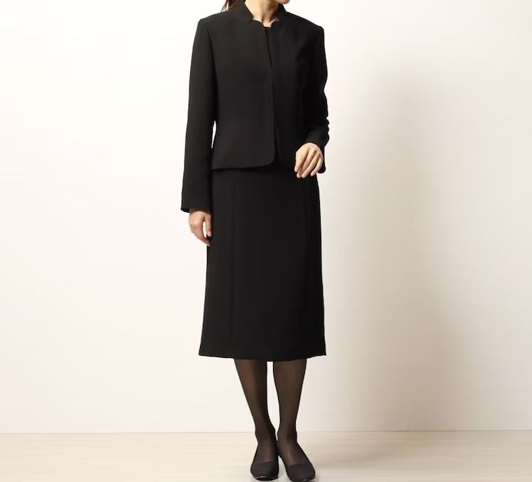 気を付けたいのがスカート丈。短くてもひざが隠れる程度のものにしましょう。喪服としては、ひざ下からふくらはぎくらいまでの丈が一般的です。