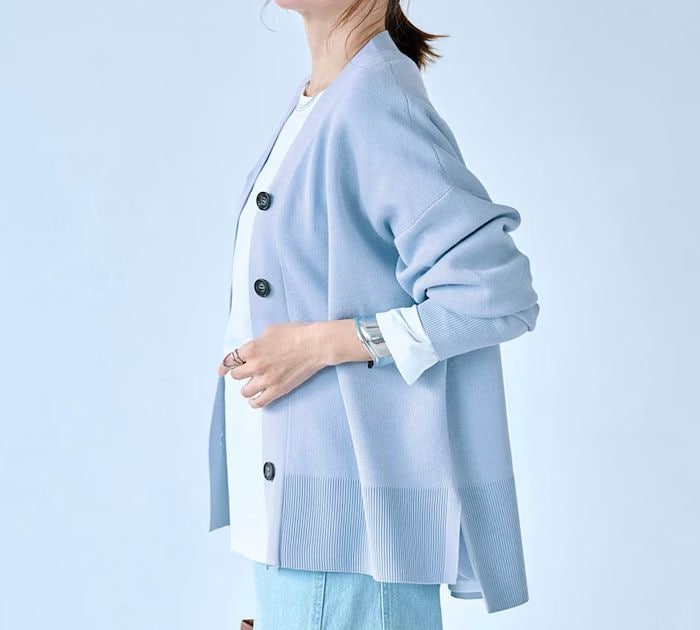体温調節がしやすいカーディガンは、色違いや形違いで複数枚持っていてもよいアイテムです。ベーシックなクルーネックやVネックは万能ですが、春は少しゆとりのあるシルエットや、ロング丈のカーディガンもおすすめです。ロング丈は体型カバーにもなり、パンツスタイルをスタイリッシュに見せてくれます。