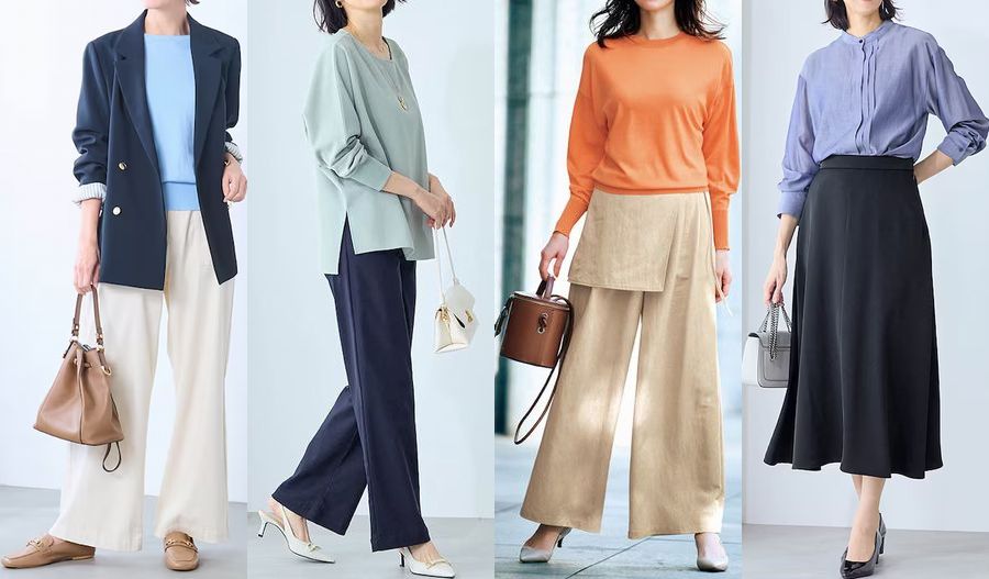 パンツスタイルは風の影響を受けにくく、春らしい軽やかなトップスとも好相性なため、毎日の通勤にぜひ取り入れたいアイテムです。