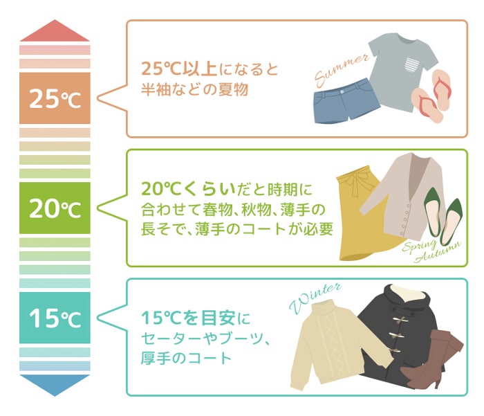 - ・15℃を目安にセーターやブーツ、厚手のコート