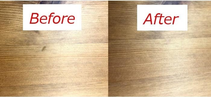 ②補修ペンで傷をなぞっていく。木目がある場合は傷をただなぞるのではなく、木目の方向にペンを動かすとより自然な仕上がりになります