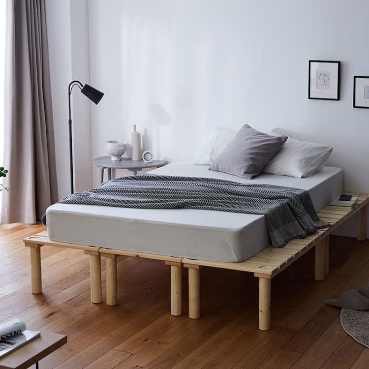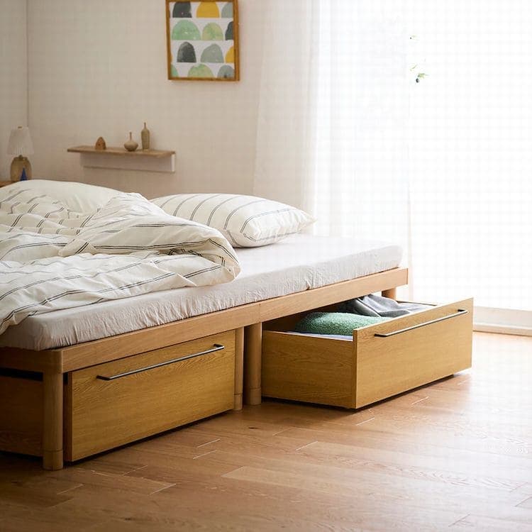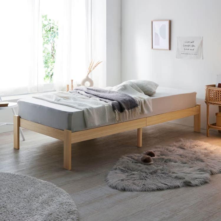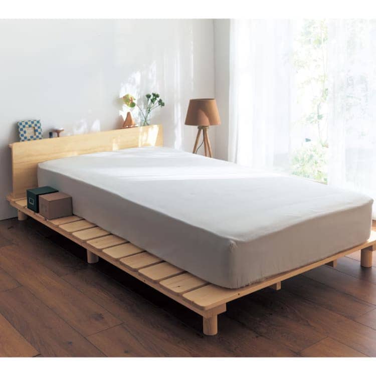 こちらは、すのこベッドより少し高めのロースタイルのベッド。角は丸みをつけたやさしい仕上りです。高さが低いので圧迫感を感じにくく、狭い部屋にもおすすめ。2台並べば、家族が増えたときにはファミリーベッドとしても使えます。