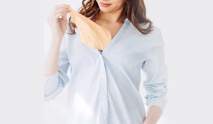 胸の谷間に挟むタイプの汗取りパッドは、汗を吸収してくれるため、汗のシミができるのを予防できます。下着の間に挟むだけでいいので、どんなタイプのインナーにも対応してくれるのが大きなメリットです。