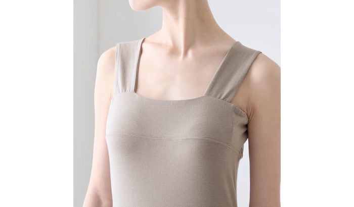 夏の下着のお悩みの一つでもある、「チラ見え」を防いでくれるのがこのインナー。スクエアの襟ぐりと脇高設定で、かがんだ時や腕を上げたときのブラジャーや脇が見えるのを防いでくれます。