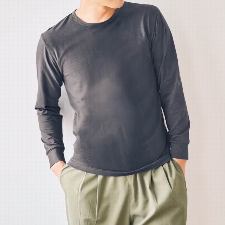 男性の体型に合わせて設計されたクルーネック長袖インナーです。