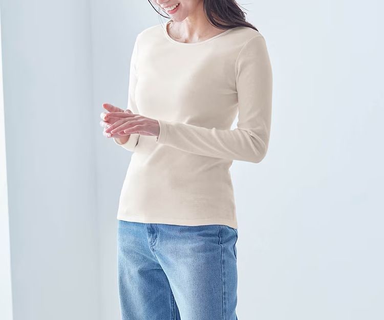 色んなアウターに合わせやすい、定番のクルーネック長袖タイプ