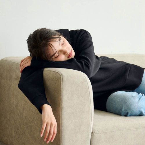 薄手ですが、素材には細番手のふんわりやわらかな綿とホットコットの吸湿発熱綿を使用しているので、冷えが気になる春先や秋口の気温変化にも対応でき、着回し力の高いアイテムです。シアーの軽やかさにより、重ね着をしてももたつき感がなくレイヤードスタイルを楽しめます。