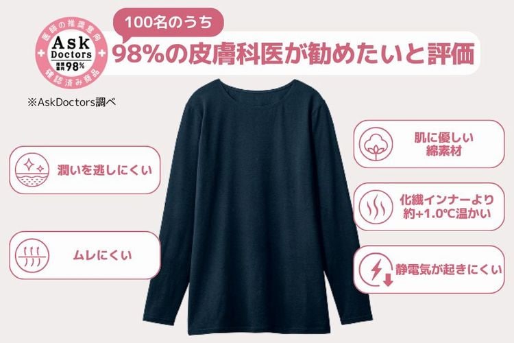 【高藤先生コメント】「肌は湿度のバランスが崩れると刺激に敏感になります。吸湿性・保湿性の高い素材は、汗ムレや乾燥を防ぎ、バリア機能を保つうえでとても重要です。敏感肌の人ほど素材選びが効果的に働きます。」