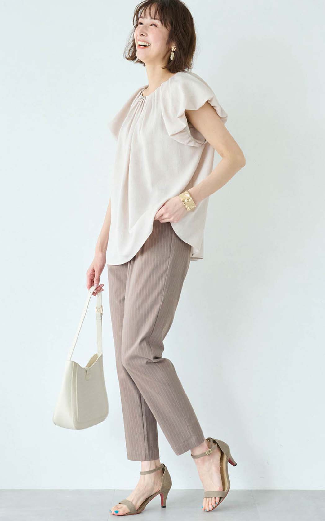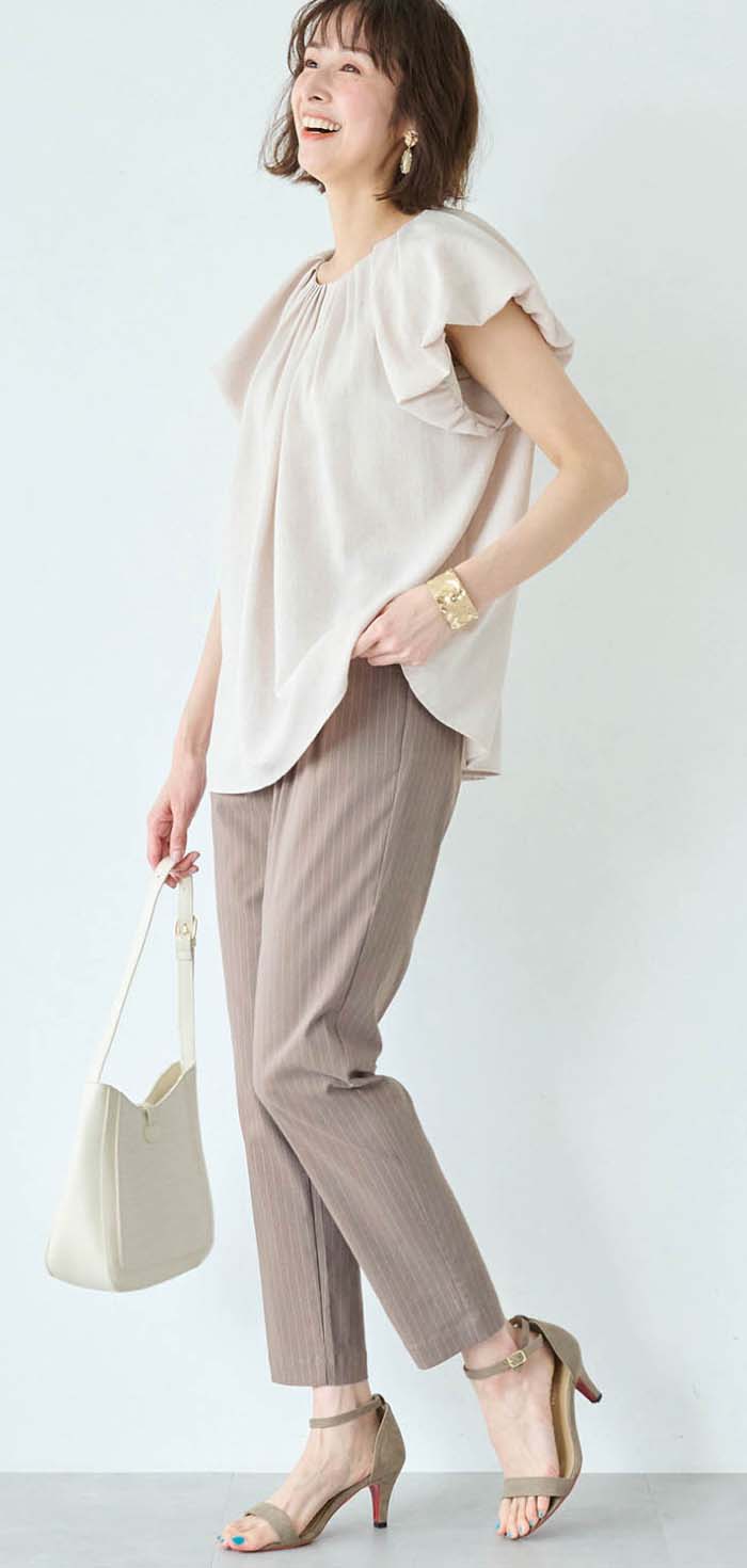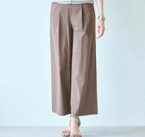 猛暑の中ウォーキングなどした時、足に纏わりつかず快適です。ウエストも締め付け過ぎず、カラーもグレージュで合わせやすいです。