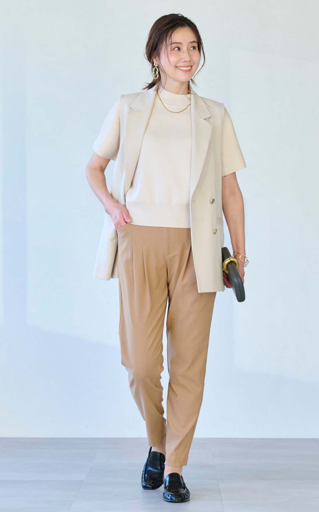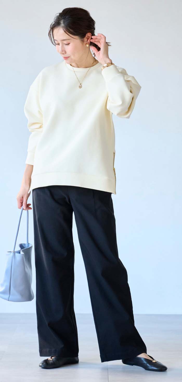 ストレッチがきいているので、着脱が楽です。ほどよいきちんと感もあり、何着るか迷ったら、手にとってしまう万能選手です。