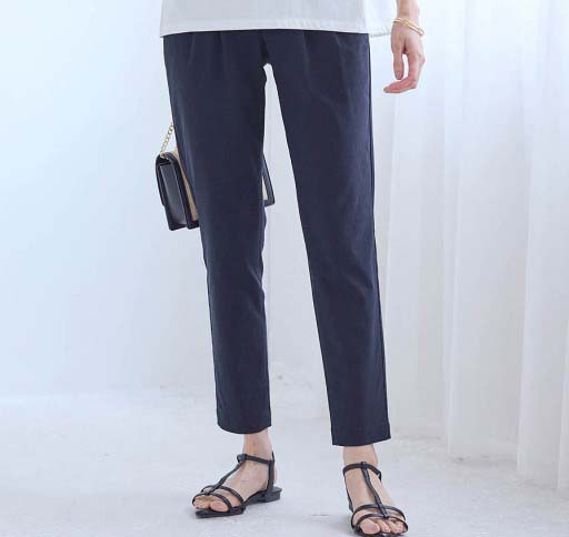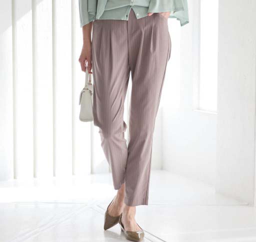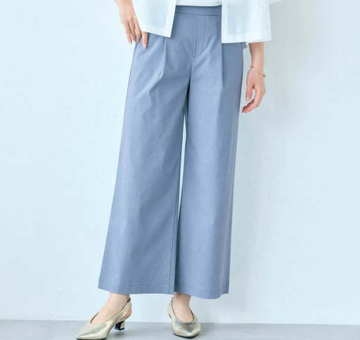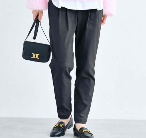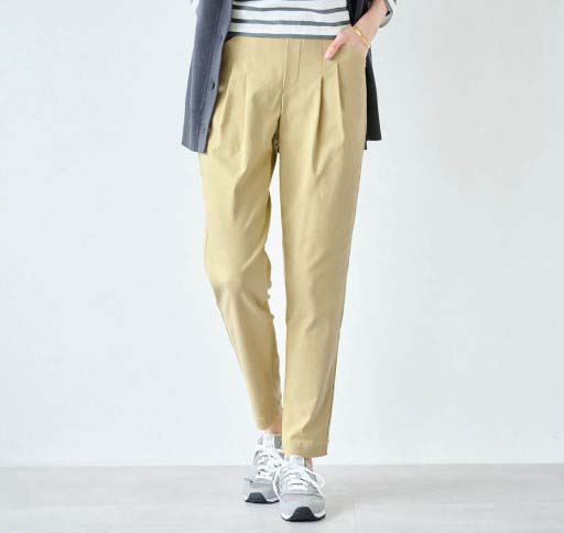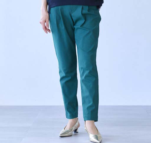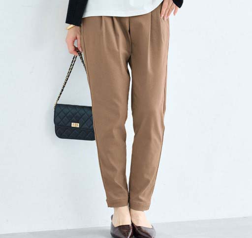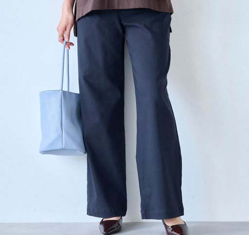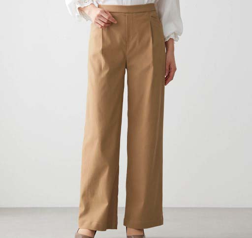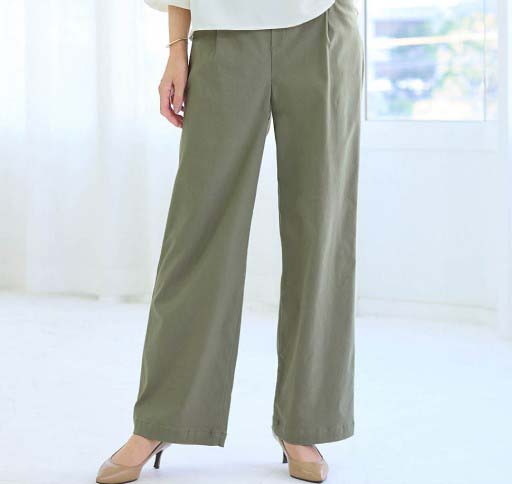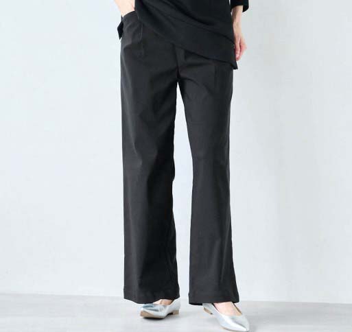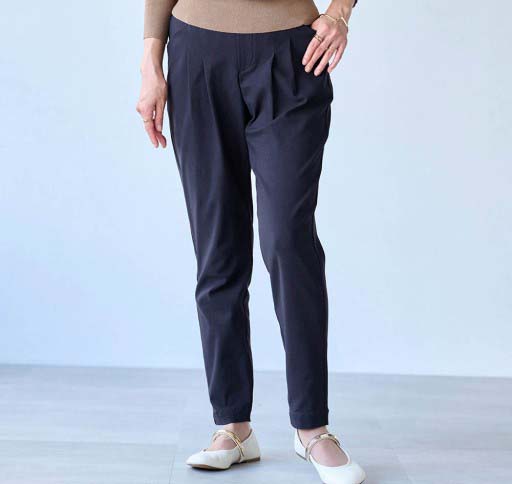 勤務用のパンツを探していました。腰回りにゆとりがあり、座った時の締め付けがなく伸びも良いので履き心地が◎です。すっきりして見えます。シワがつきにくいのも良い。ウエストゴムでチャックがないのも楽。いろんな色があるといいな。