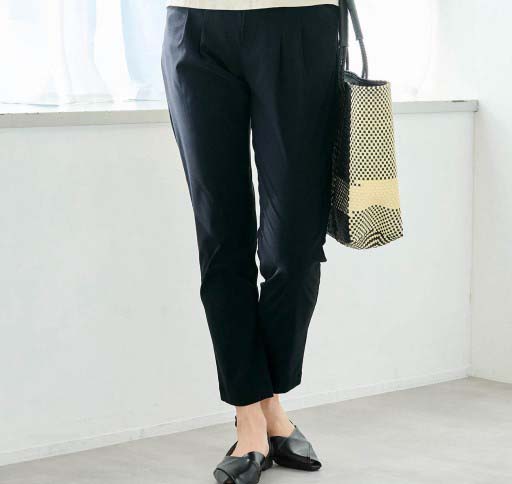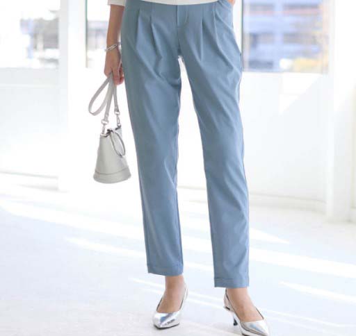 軽い生地で着心地がいいです。立ったり座ったりしてもずれることがなく仕事中も快適でいられます。このパンツをはいてしまうと他ではなかなか満足できないかも。