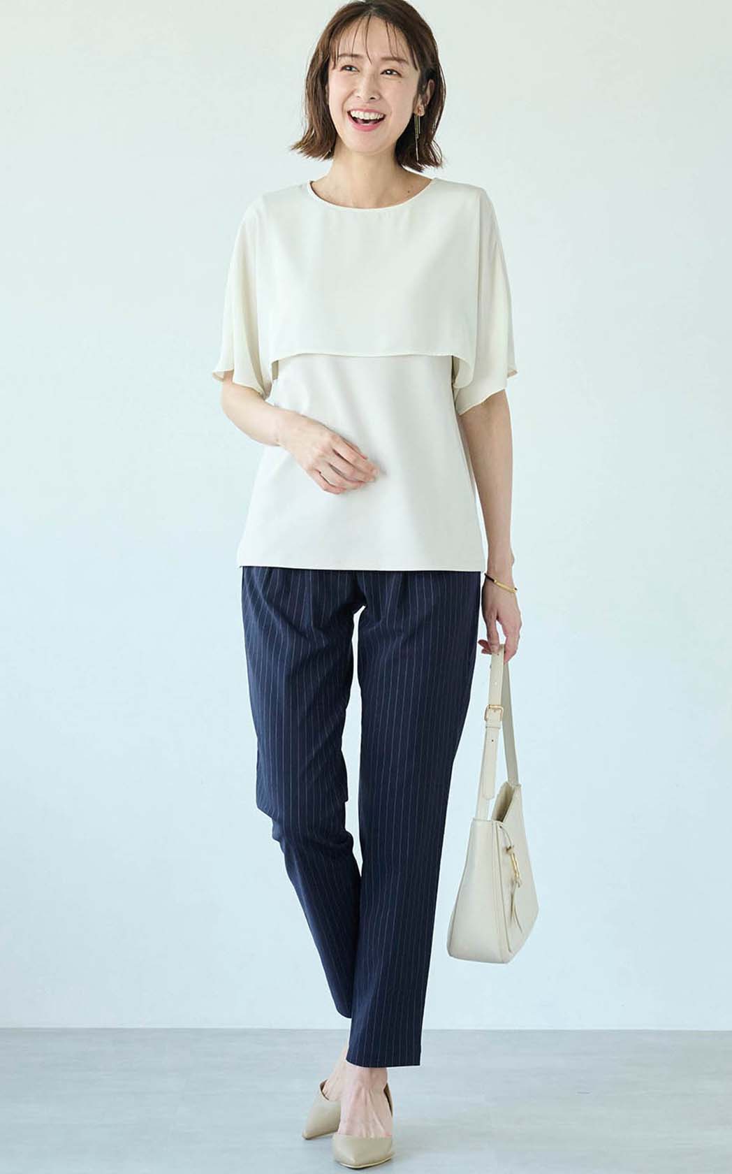 ぽっこりおなかが目立たないため、トップスをインして着れます!