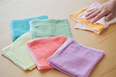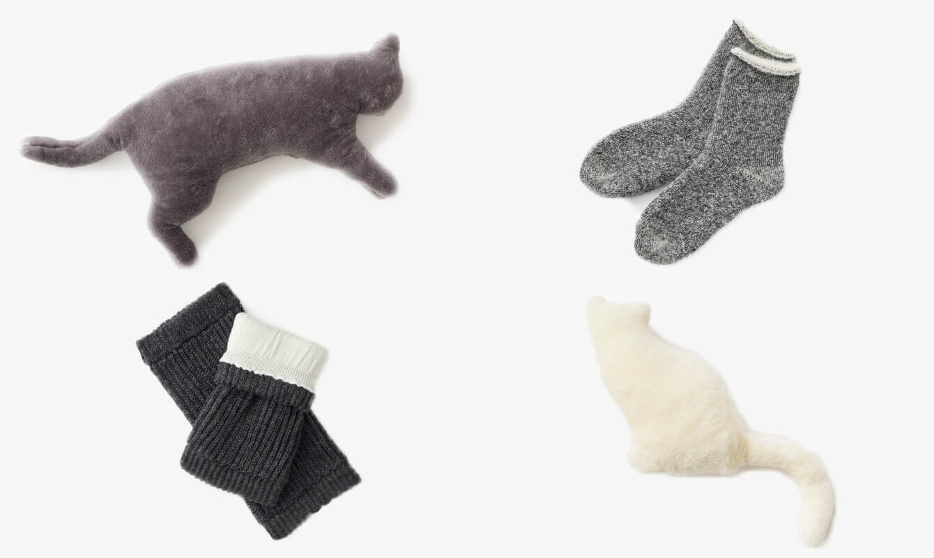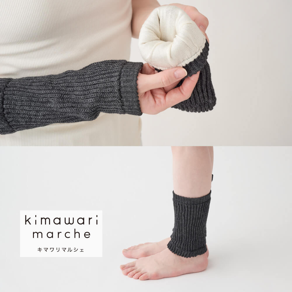 ウォーマー各種や靴下は奈良の丸編みで丁寧に制作。やわらかな感触なので、おやすみの際にも快適にお使いいただけます。
