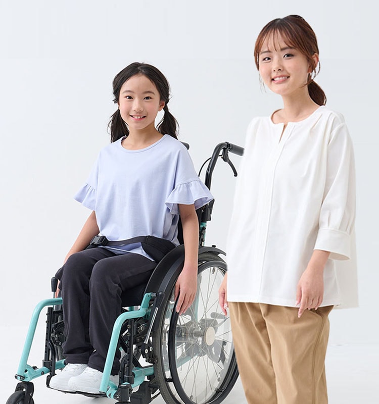 袖・脇・裾がまるっと開くから、手や足を動かしにくい方でもするっと着やすい。ケアする方の着替えの負担も軽減します。