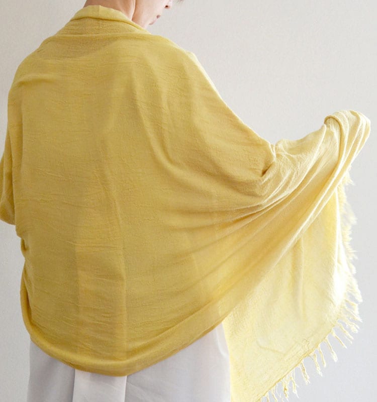 吸水性や速乾性にすぐれているから、季節の変わり目のショールやウォーキングタオルにも◎。ふんわりと包み込み、汗をかいてもさらっとしています。
