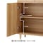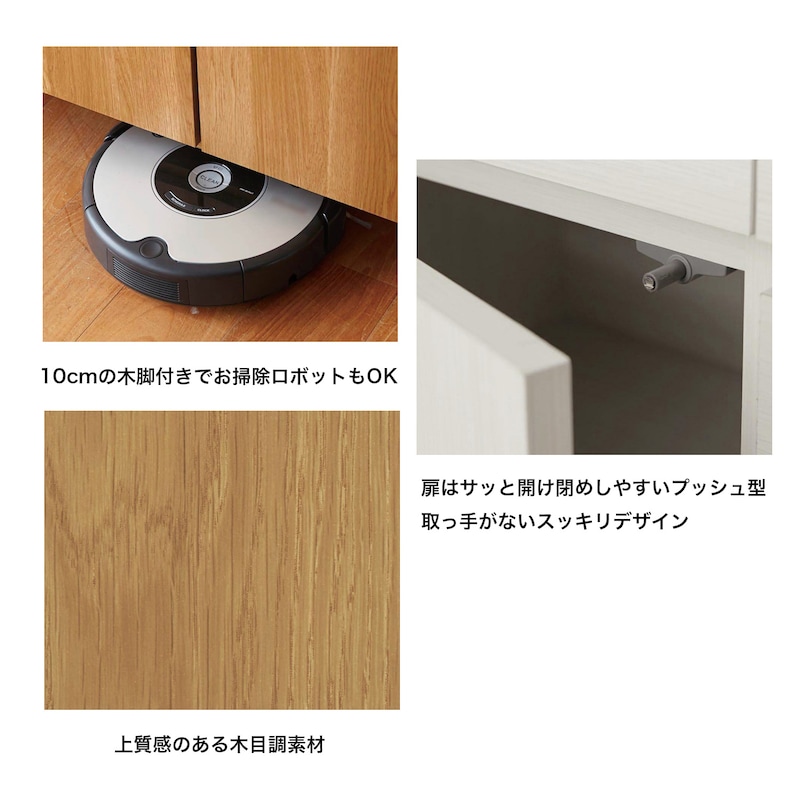 商品説明には書いてなかったけど扉は押すと開くプッシュ式タイプです。その扉のプッシュ部品の本体側が、オープン時には直径5ミリぐらいの細い棒が2cm弱ぐらい突き出るため、危ない気がします。棚の中をのぞき込んだりしたときに額や目をぶつけそう。身長の低い幼児のいるご家庭にはおススメしません。写真ではオープン時にもプッシュ部品が引っ込んだ状態で写っているのはどうなんでしょう?わざわざ押し込んでから撮影したのかな?実物を見ずに買うのだからそのあたりはちゃんと商品説明に書いてほしいです。