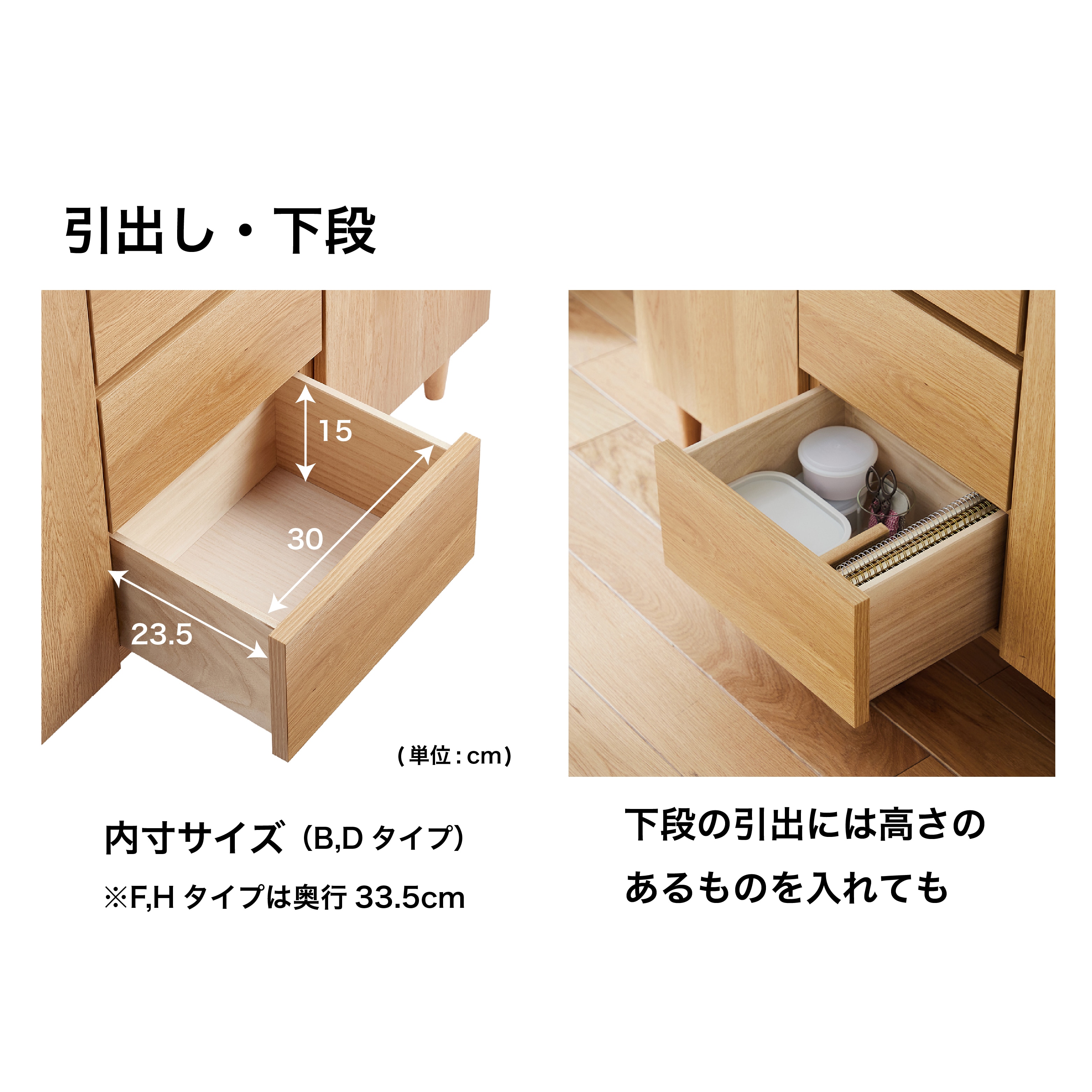 引出しにはスライドレールは付いていません。
