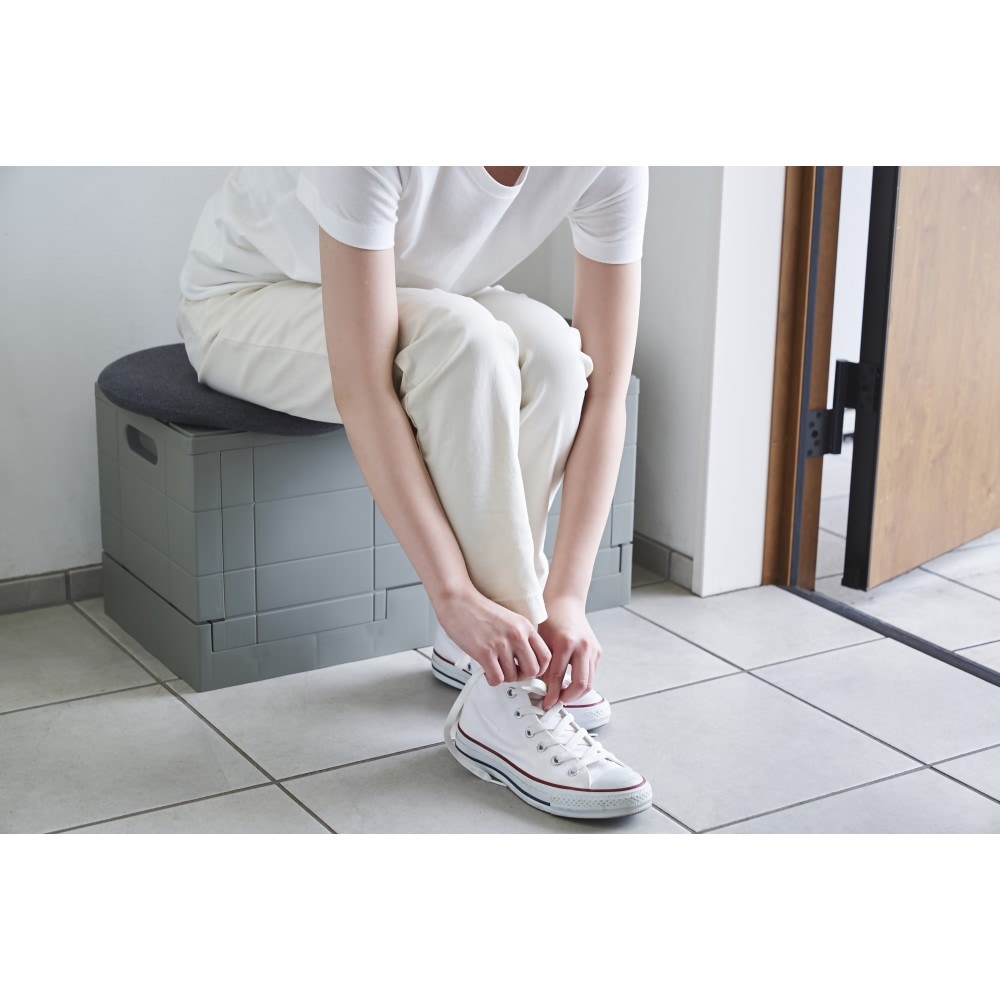 子供のオモチャを入れる箱を捜していたのですが、デザイン的にもサイズ的にもなかなか気に入ったものがなかったのですが、こちらは組み立て式でおもちゃ箱にもなり、ふたをすると椅子にもなり、使い勝手が最高です。 重たいオモチャをいれても持ち運びもしやすくオモチャを入れなくなったとしても今後違うものを入れて使えます。2個買ったのですがもっとあっても良いかなっと思ってます。
