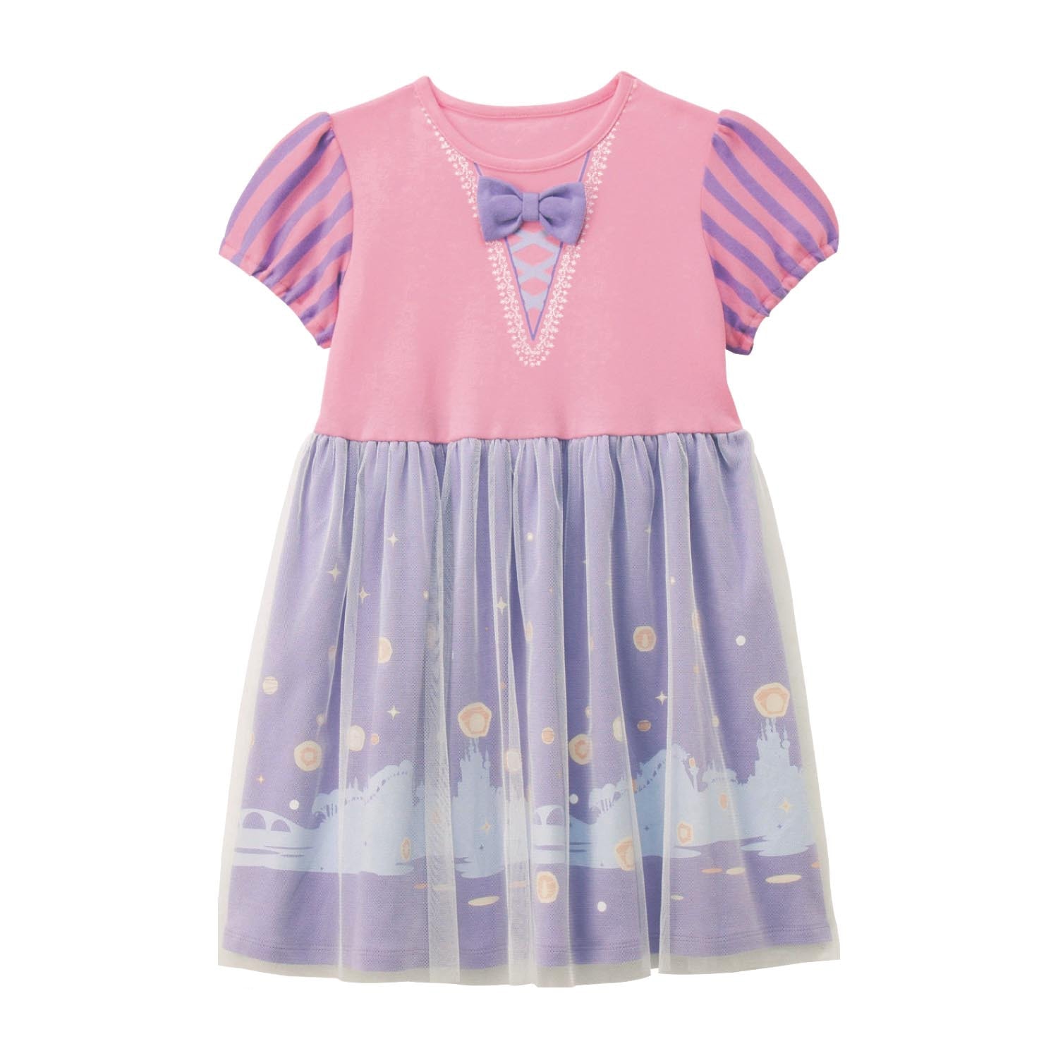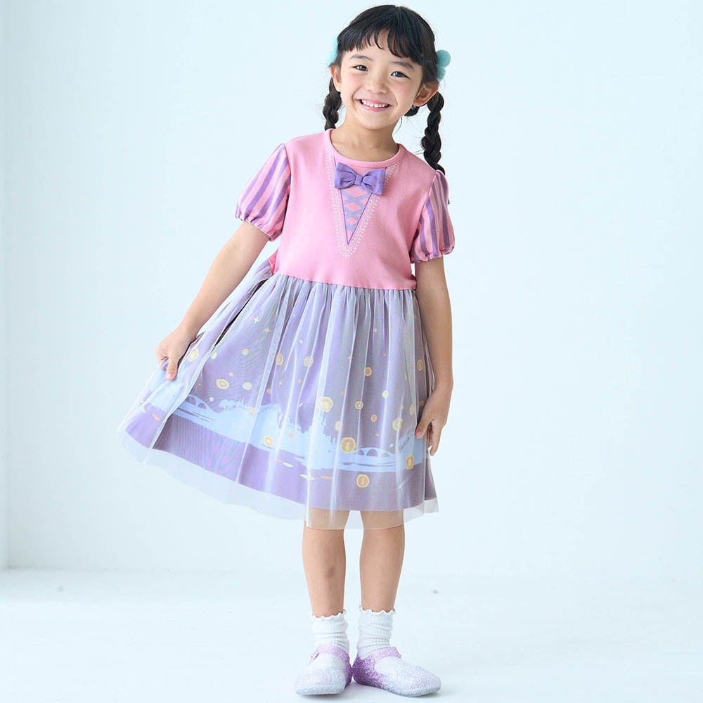 娘がラプンツェル大好きなので購入しました。夏にドレスを着せてディズニーにいくには暑すぎてかさばってかわいそうなので、こちらのワンピースで何着か用意していって着替えたりしながらプリンセス気分で楽しんでいます。