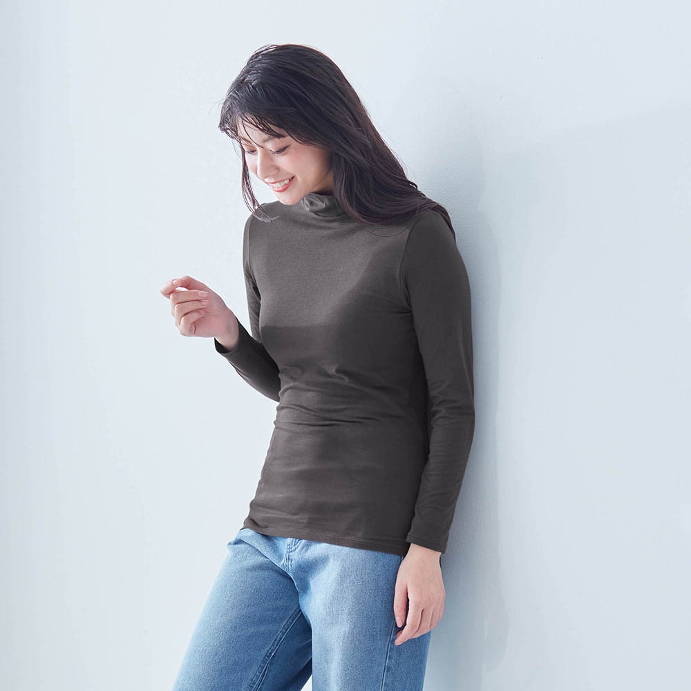 昔に買った物をずっと着ていたのですが今回新しく買い直しました。昔のものは表面がテカっていて嫌でした。こちらはテカらないし下着っぽくないので良いですね。タートルネックの部分がぴったりとしているのはあたたかくて好きなのですが、全体的にぴったっとしているのは苦しく感じてしまうので、いつもはLくらいときどきLLですが3Lを購入しました。それでもぴたっとはしていますが苦しさを感じないので満足です。この季節はベストの下に着る予定です。あたたかいし好きな商品です。薄いけど丈夫だと思います。
