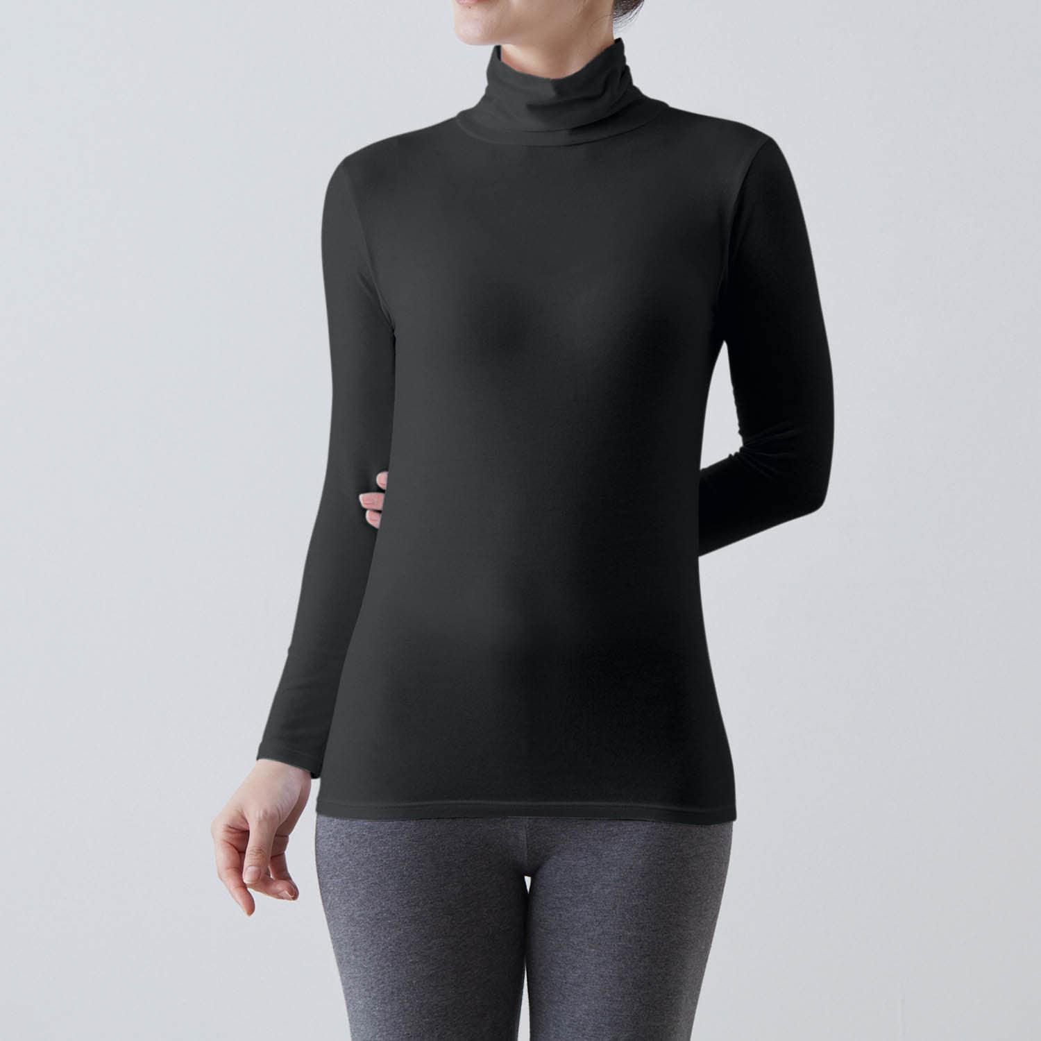 昔に買った物をずっと着ていたのですが今回新しく買い直しました。昔のものは表面がテカっていて嫌でした。こちらはテカらないし下着っぽくないので良いですね。タートルネックの部分がぴったりとしているのはあたたかくて好きなのですが、全体的にぴったっとしているのは苦しく感じてしまうので、いつもはLくらいときどきLLですが3Lを購入しました。それでもぴたっとはしていますが苦しさを感じないので満足です。この季節はベストの下に着る予定です。あたたかいし好きな商品です。薄いけど丈夫だと思います。
