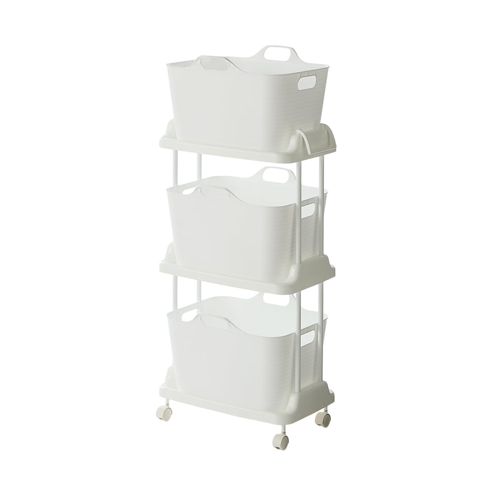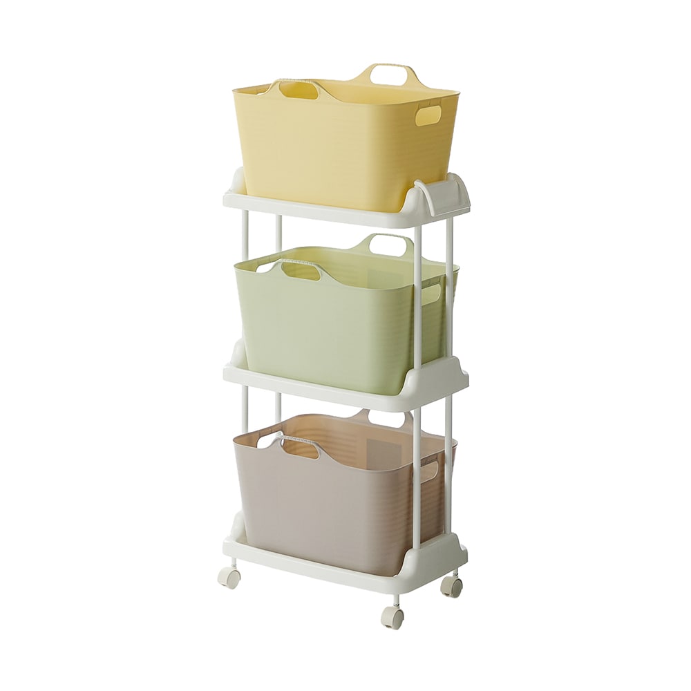 ソフトバスケット付きワゴン3段・ホワイト