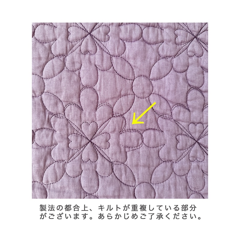 ラブザリネンはキルトケット(ハーフ) やソファカバーを数枚持っており、今回セールになっているので、もう一枚シングルサイズが欲しいなと購入しました。届いて広げてみると、“ん?なんか違和感!”よく見ると真ん中辺りの花模様一列(模様11個くらい)のほとんどの縫い目が二重~四重になっていて、しかも線がずれてる。今回ベージュを購入したためか。その列の糸の線が濃く黒っぽく見えて目立つ。