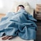 色はおちついたブルーで素敵です。触った感じはシャリっとしてますが。ごわごわ感じはないです。縫製は丁寧でしっかりしてま。す。素肌に掛けてみましたが。さらっとして気持ちがいいです。汗かきのわたしはとても重宝してます。