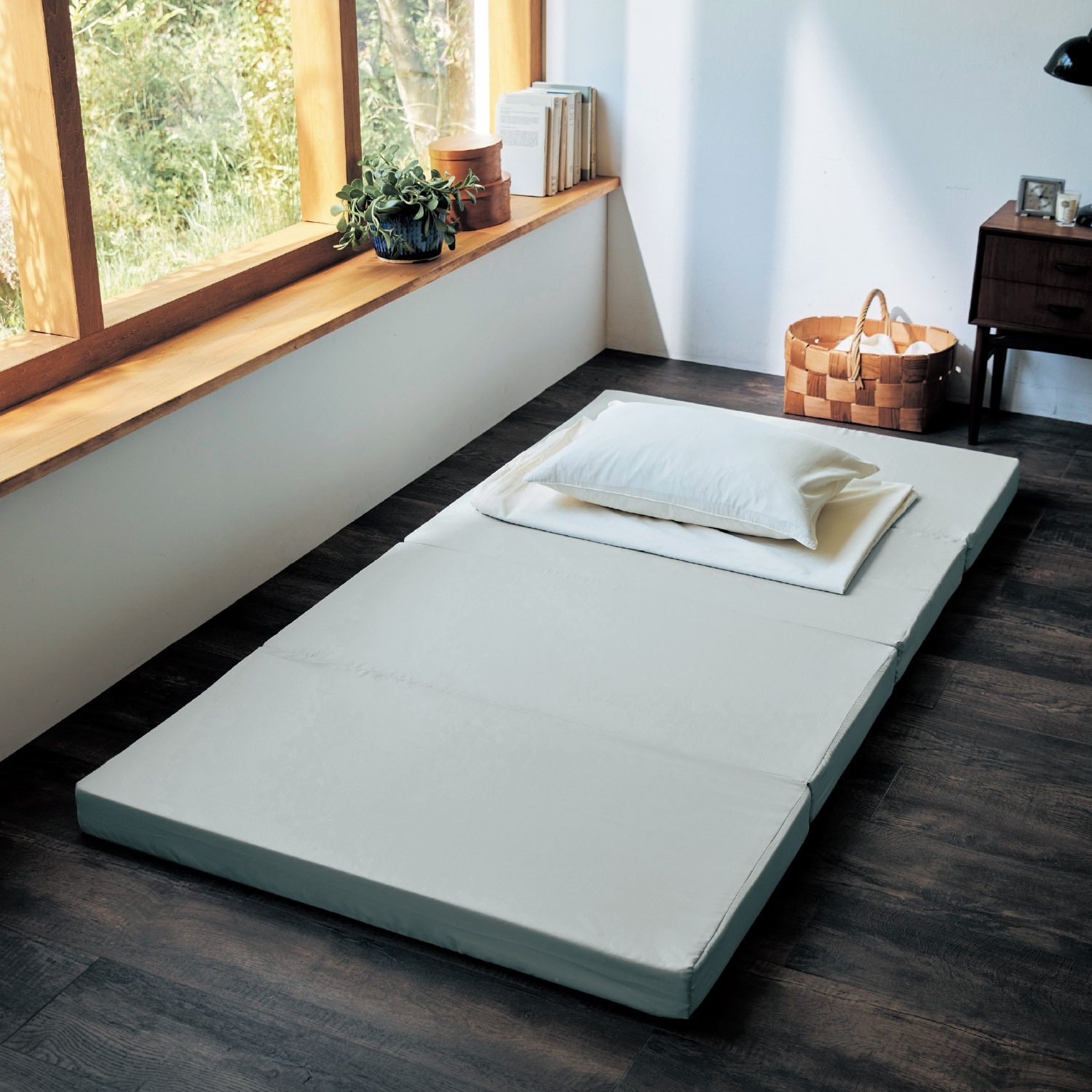 4つ折りで、厚さ8cmのものを探していて、こちらの商品を購入しました。 思っていたより、軽かったです。マットの上に敷き布団を敷いて寝ています。 背中の痛みが解消され、以前より熟睡できています。 どちらかといえば若干硬めと思いますが、硬すぎず、柔らかすぎず、長く使う事を考えれば丁度良い硬さだと思います。