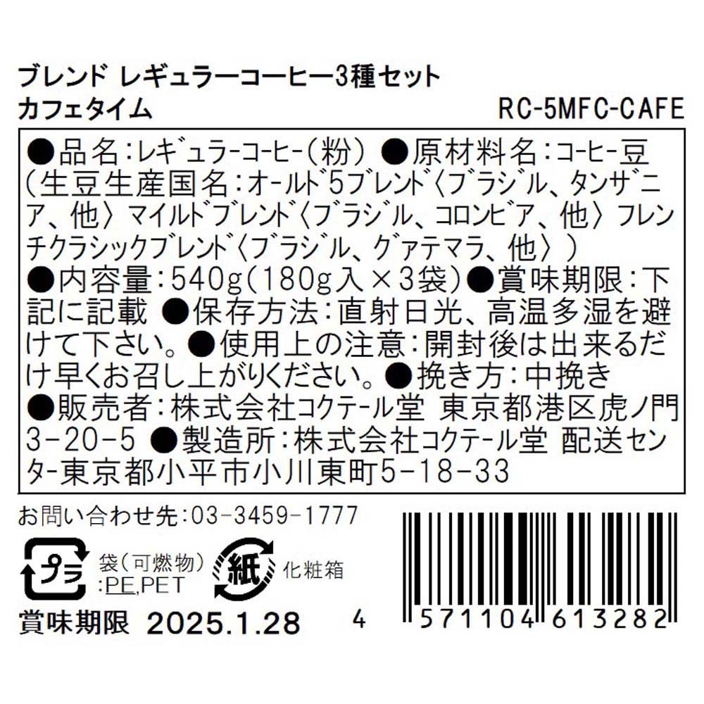 ●マイルドブレンド(粉)180g、フレンチクラシックブレンド(粉)180g、オールド5ブレンド(粉)180g×各1 計3袋