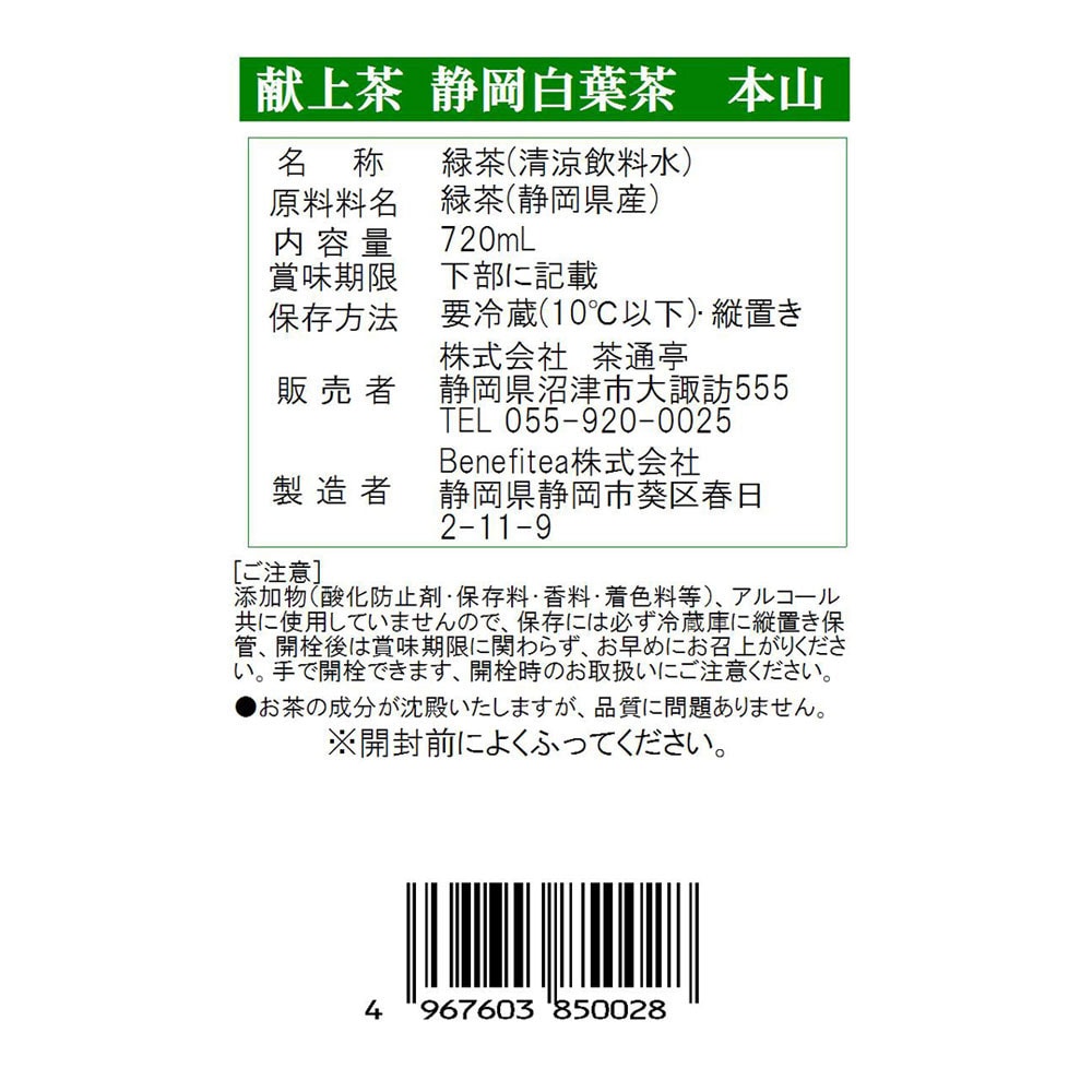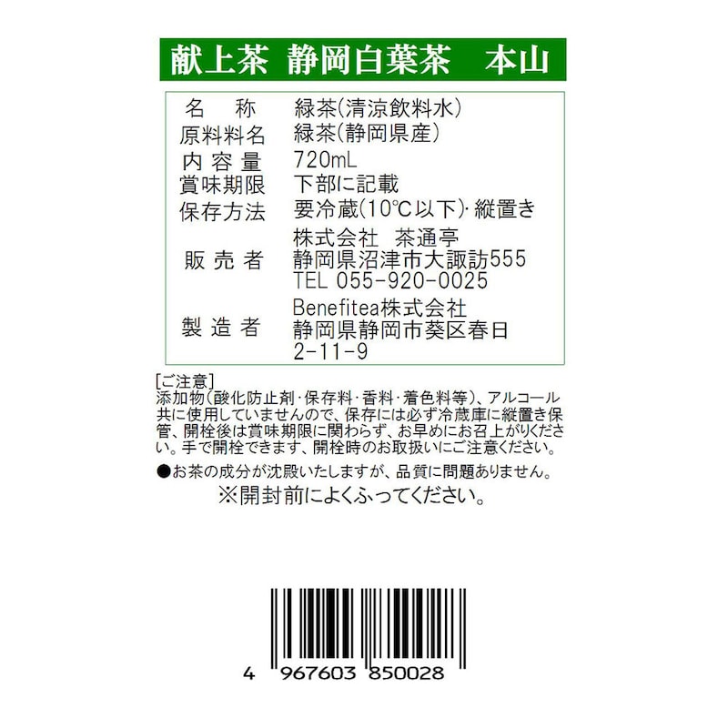 Liquid Tea 献上茶 静岡白葉茶 本山 720ml