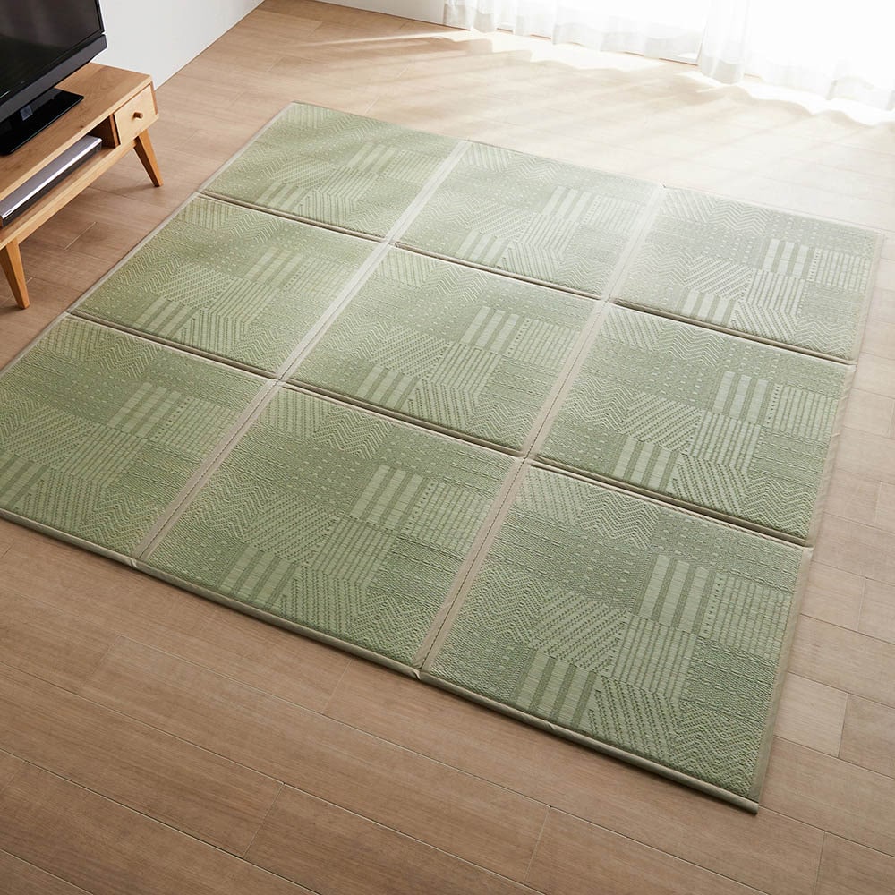他のインテリアの邪魔にならない柄の様で馴染みました。フローリングの上に敷いて直に座っても厚みがあるのでそこまで痛く無いです。プチ和風スペースとなり気に入っています。