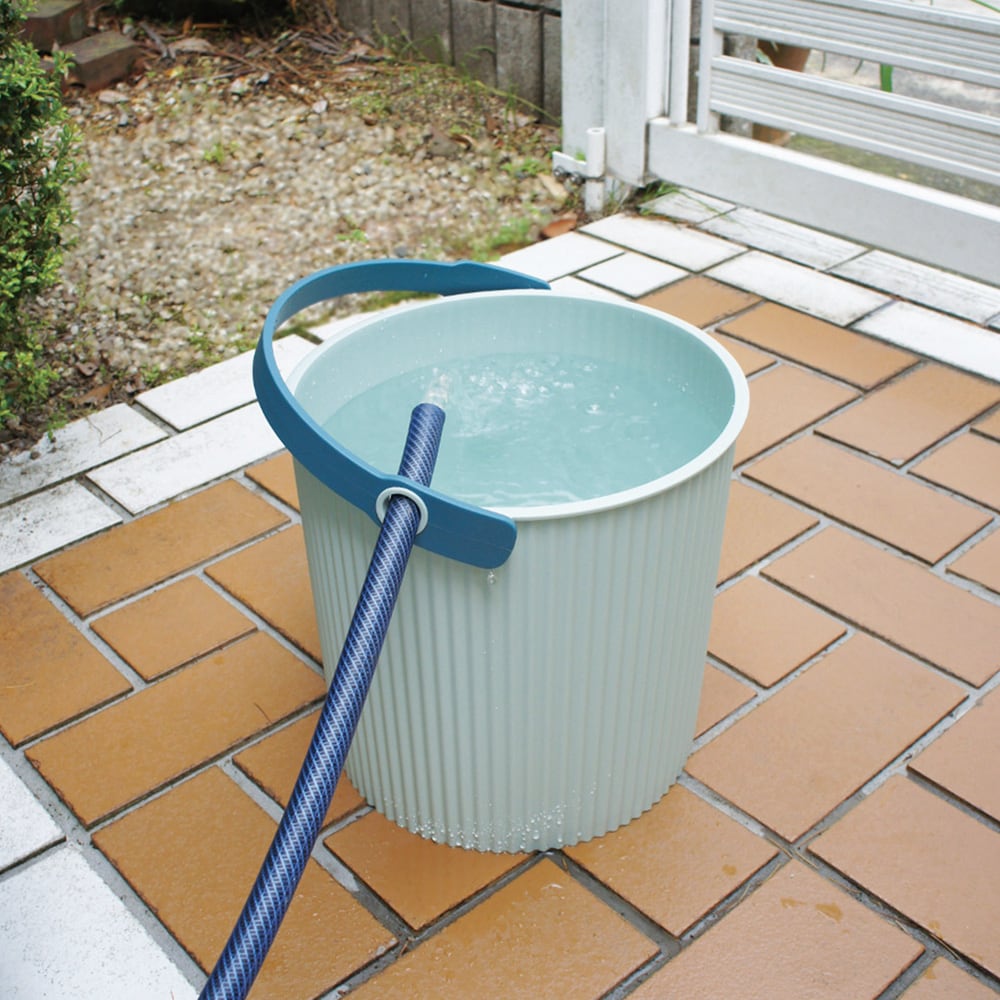 ●ハンドルのリングにホースを通せばホースを固定して水が溜められます。