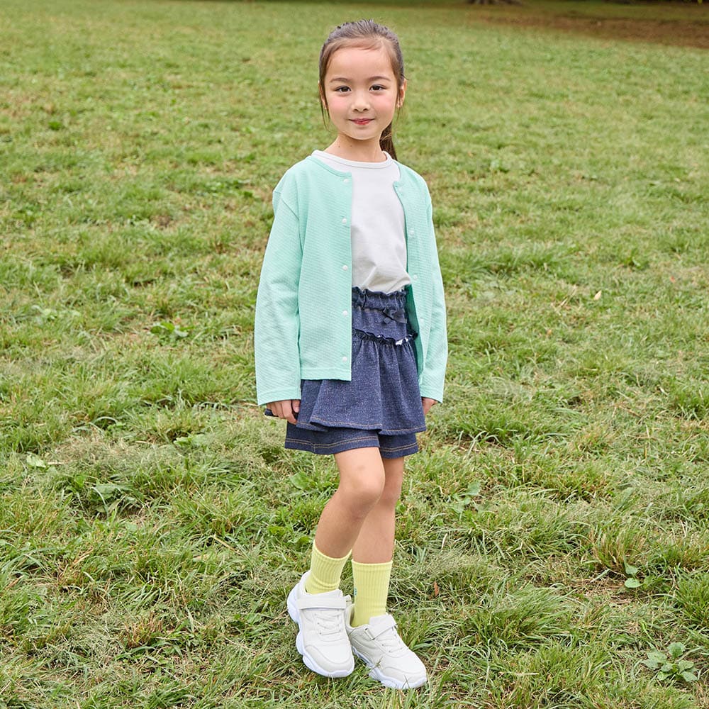 生地は夏用でサラッと心地よく、娘は半袖の上に羽織って登校して自分で脱ぎ着して調節しています。フードなど余計なものが付いておらず、軽いし洗濯してもすぐに乾きます。