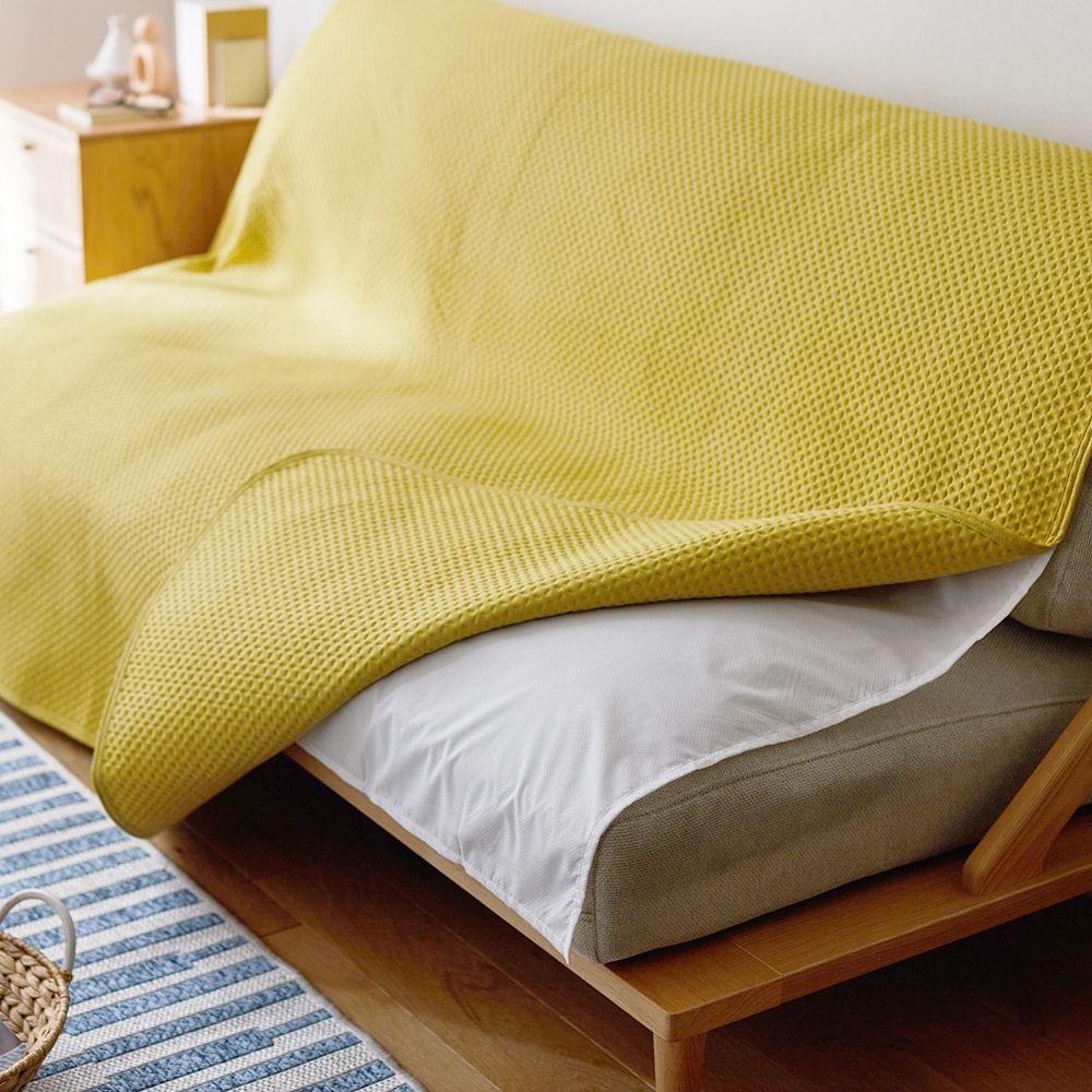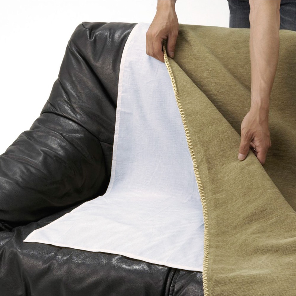 わが家のソファーは分割タイプで、ソファーを大きな布地で包んでカバーしていました。このすべり止めシートを使うと掛けるだけなので、洗い替えの時がとても楽になると思います。
