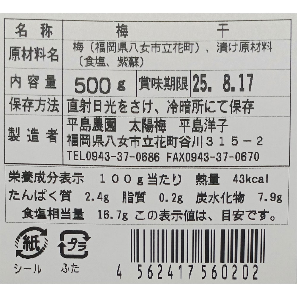 この梅干、余計なものが一切含まれていないので安心かつ美味でおすすめですよ。