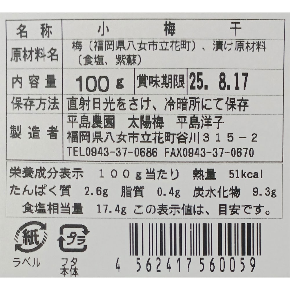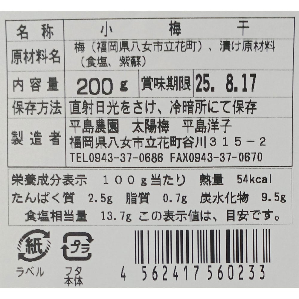 「光陽小梅」は、日本一に輝いた「日本一七折小梅」と同じ漬け方でつくられた梅干しです。小粒で種が小さく、古くから福岡県で栽培され愛されている梅干しは、果皮がかためのため持ち運びやすく、お弁当やドライブ中に食べるのにも人気の梅干です。