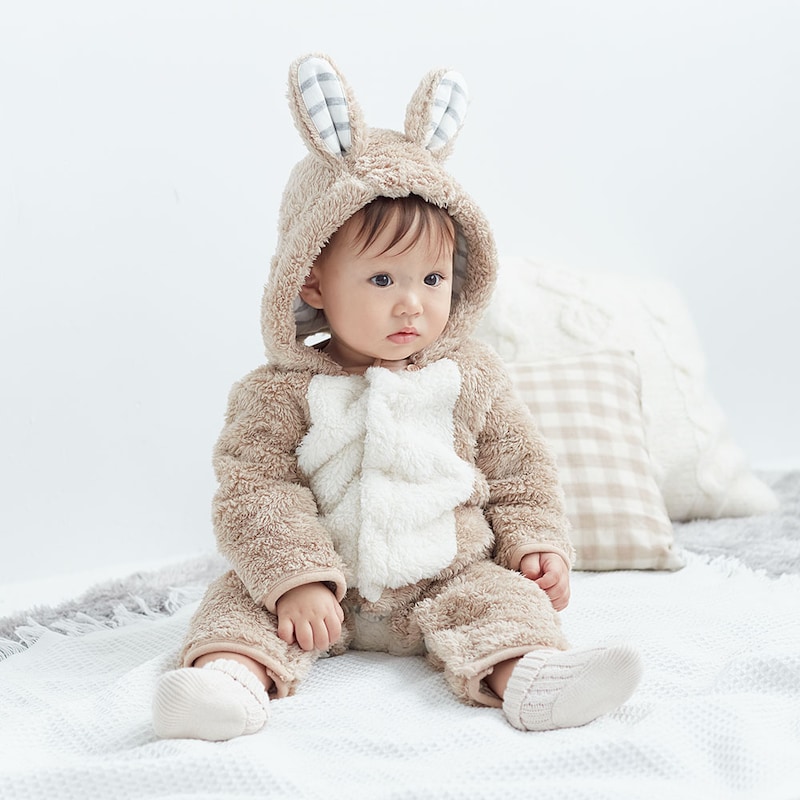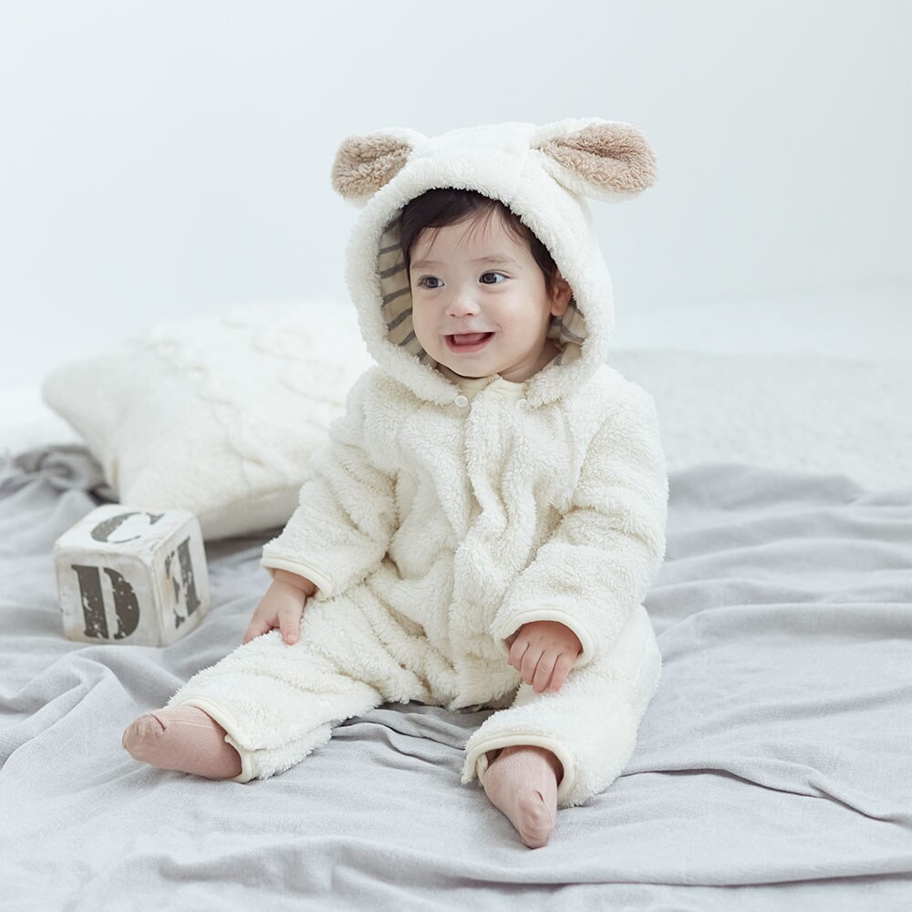1歳3ヶ月、9キロちょっとの男の子にひつじを買いました。他の方のレビューにもあるように手足は長いですが、お腹周りはそれほど大きくありません。手足は折り返して着せようと思います。もこもこの触り心地と見た目、後ろ姿がかわいらしく気に入っています!一歳すぎのサイズのもので着ぐるみのようなものがなかなかなかったのとまあまあのお値段で良かったです!もう少ししたら歩けそうなので、着せて歩くのが楽しみです♪