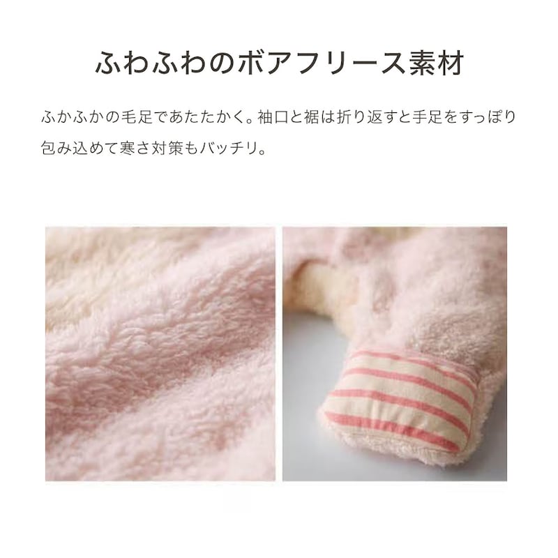 フードと足折り返し部分のみ裏地つきで他は程よい厚さのフリースです。その分部屋着に引っかかりにくくさっと上に着せて出かけられるので重宝しています。