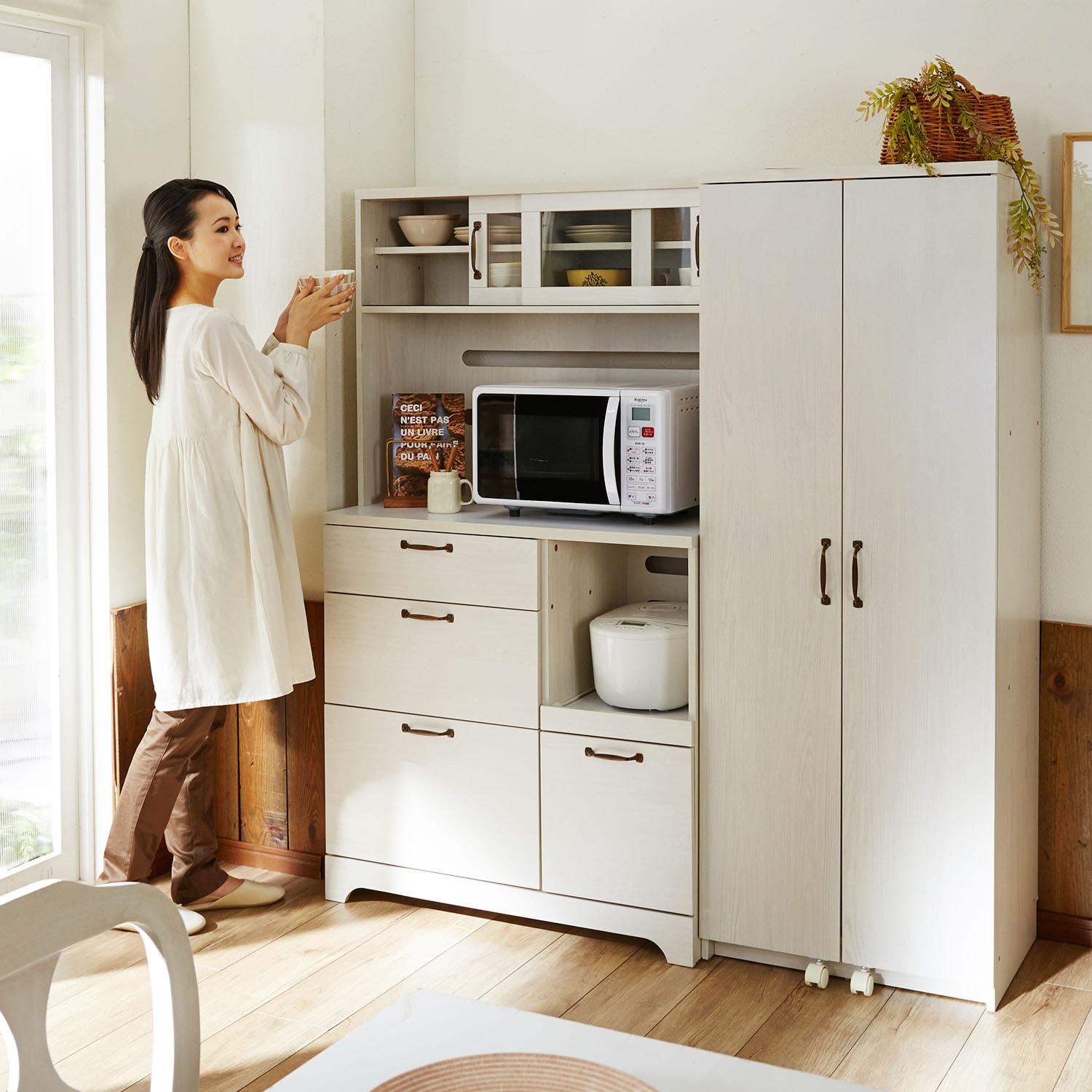 結果、コンセント4つも差せるし、炊飯器・オーブントースター・米びつもスッキリ収まり大満足です。