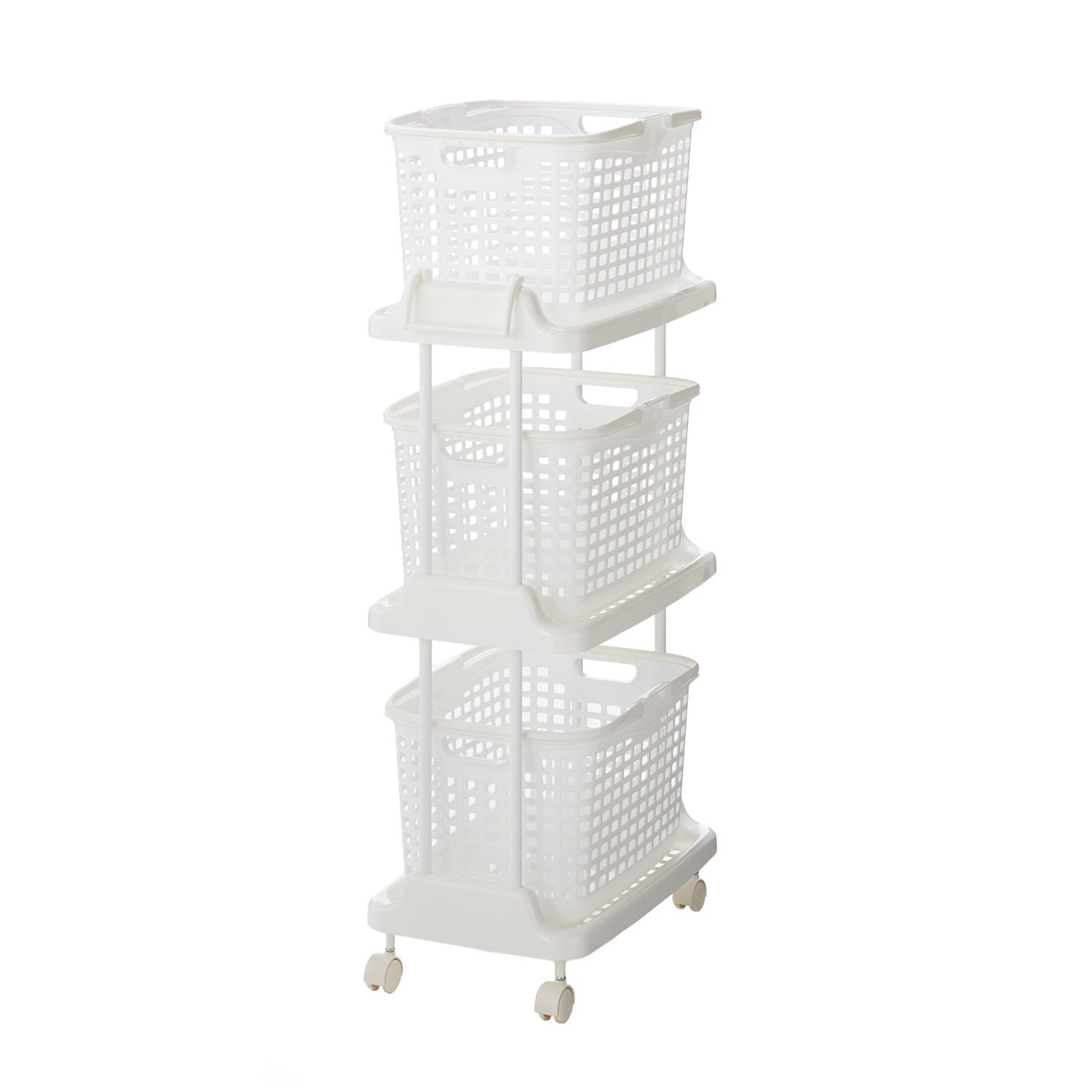 ●同サイズのバスケットがタテに並べて置ける3段タイプのバスケットワゴンです