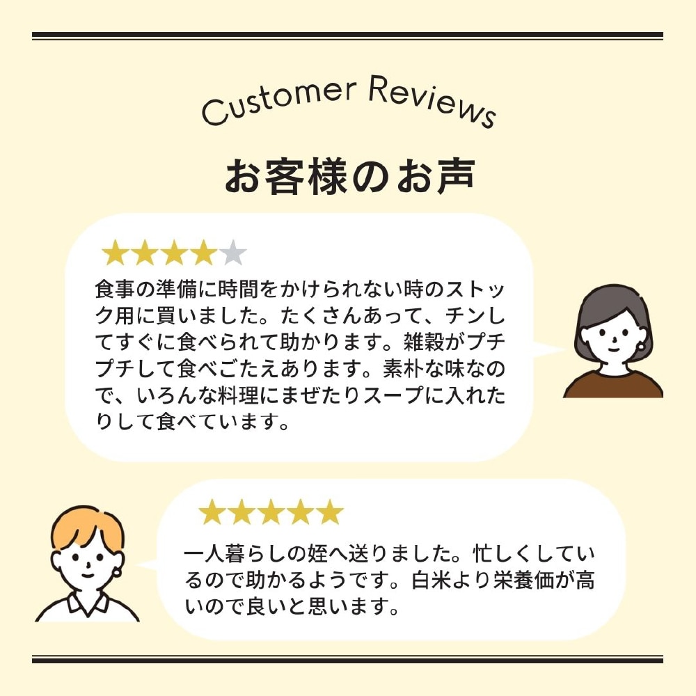 非常食用に購入しました。まだ食べていないのでお味はわかりませんが雑穀米が好きなので購入できて良かったです。一人暮らしの娘にも半分送りたいと思います。