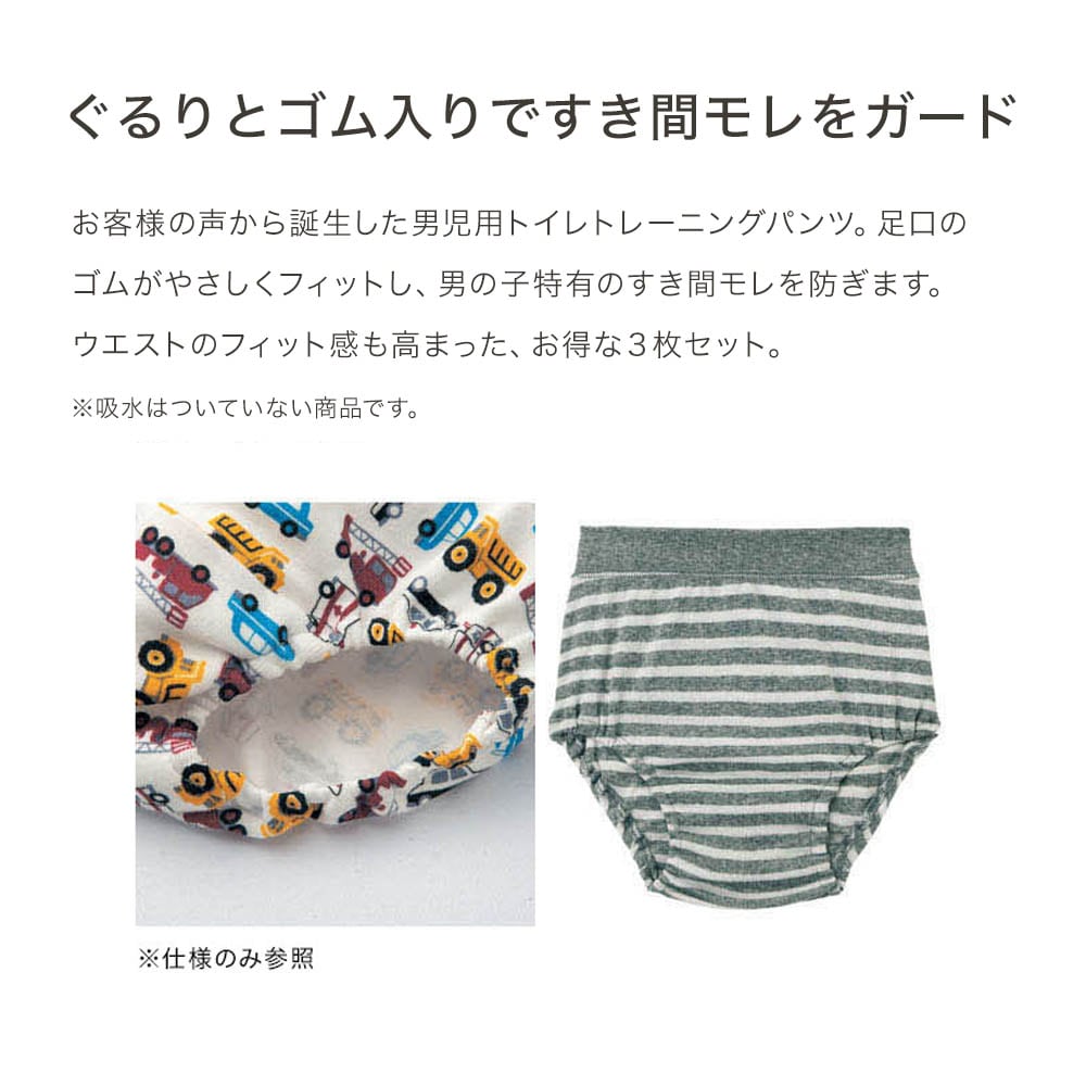 ママの声から生まれた園指定の足口ゴムの綿素材トイトレパンツ(吸水層なし)3枚セット