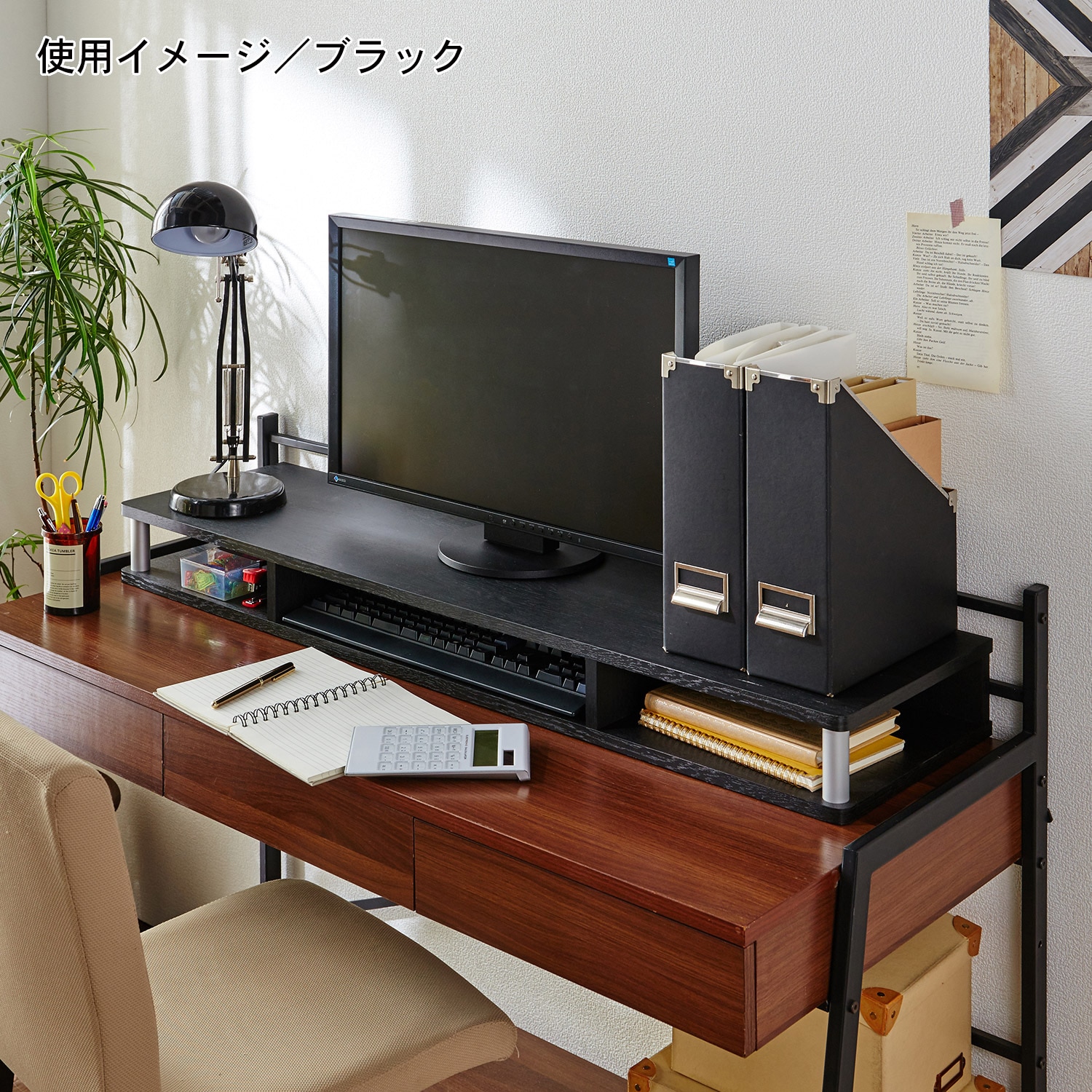 ●ワークデスクの上に置くこともできるので、パソコンモニターを何台も置きたい方やキーボードの収納スペースが欲しい方にもおすすめです