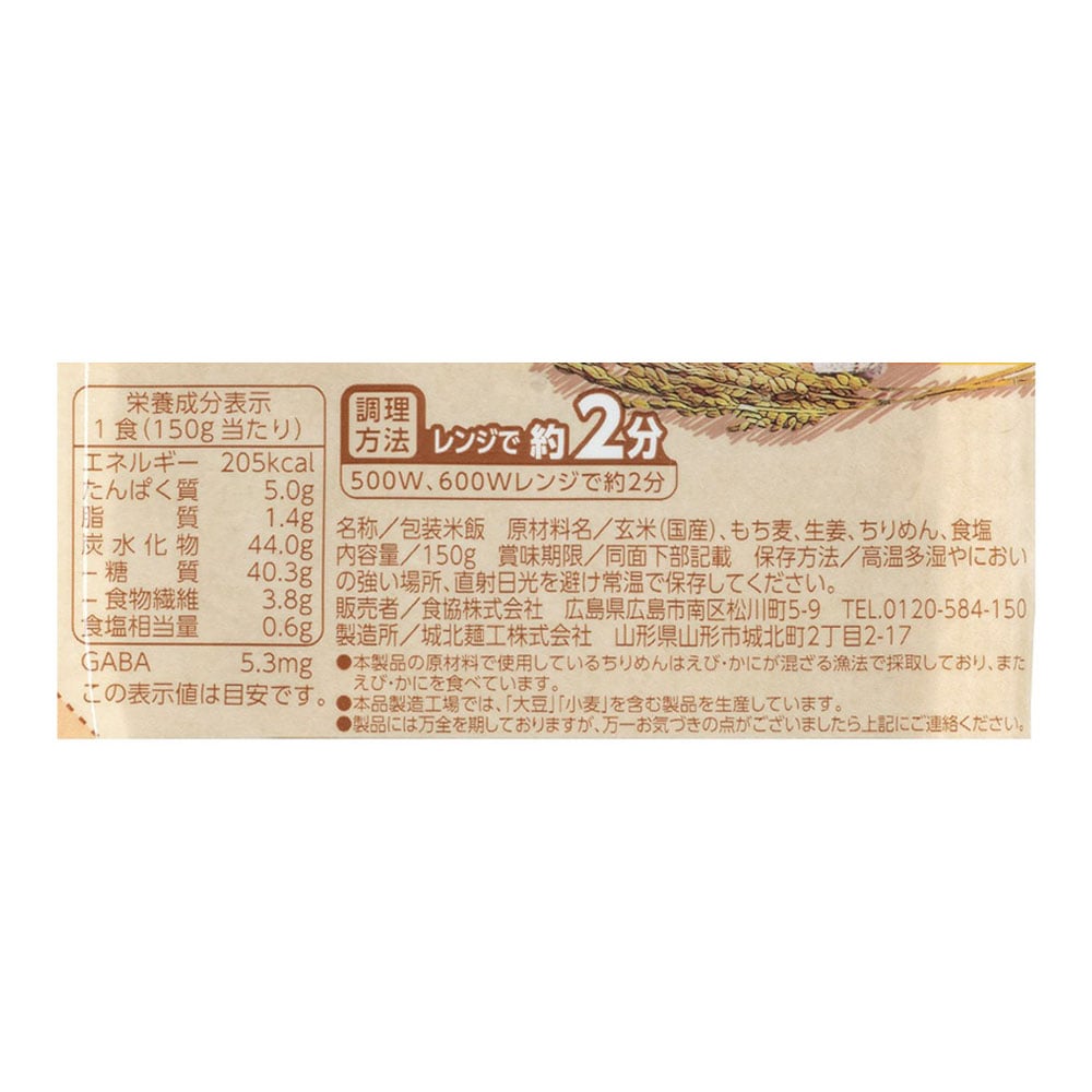 電子レンジで2分!GABA玄米ともちもち食感のもち麦に、ちりめん・しょうがを混ぜた化学調味料不使用のレトルトごはん。