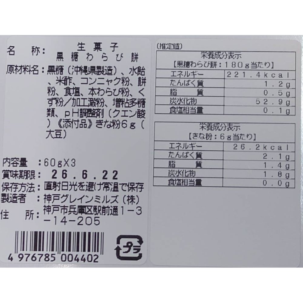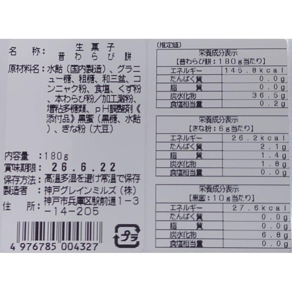 原材料のメインは、コンニャク粉で、葛粉や蕨粉も含まれる程度なので、蕨餅とは全く違う食べ物でした。